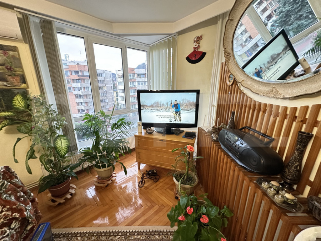 Apartamentul dispune de centrală termică proprie, calorifere, aer condiționat, masina de spalat vase si rufe, aragaz cu hota, frigider și se vinde exact cum se vede în poze. Este frumos amenajat, dar necesită o reîmprospătare pentru gusturile actuale, finisajele fiind dintr-o perioadă anterioară. Pe hol se păstrează o gresie tip mozaic în formă de romburi, care dă un aer aparte.
