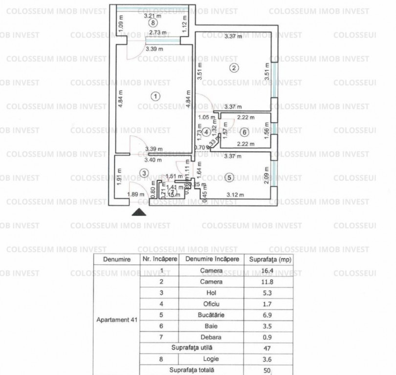 • Suprafață totală: 50 mp