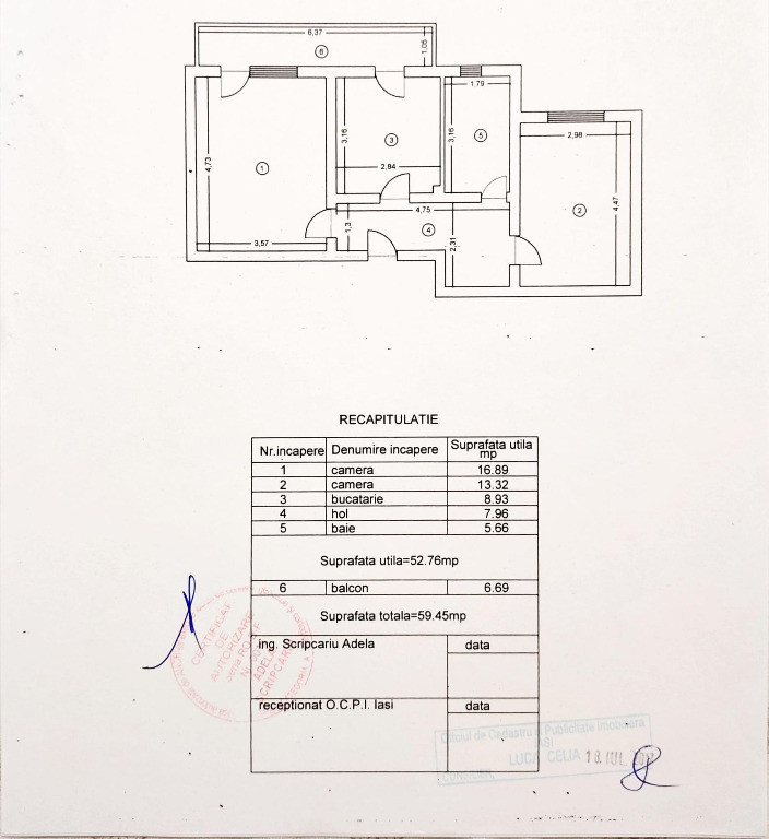 - Suprafață utilă 54mp plus 6mp balcon închis și încălzit