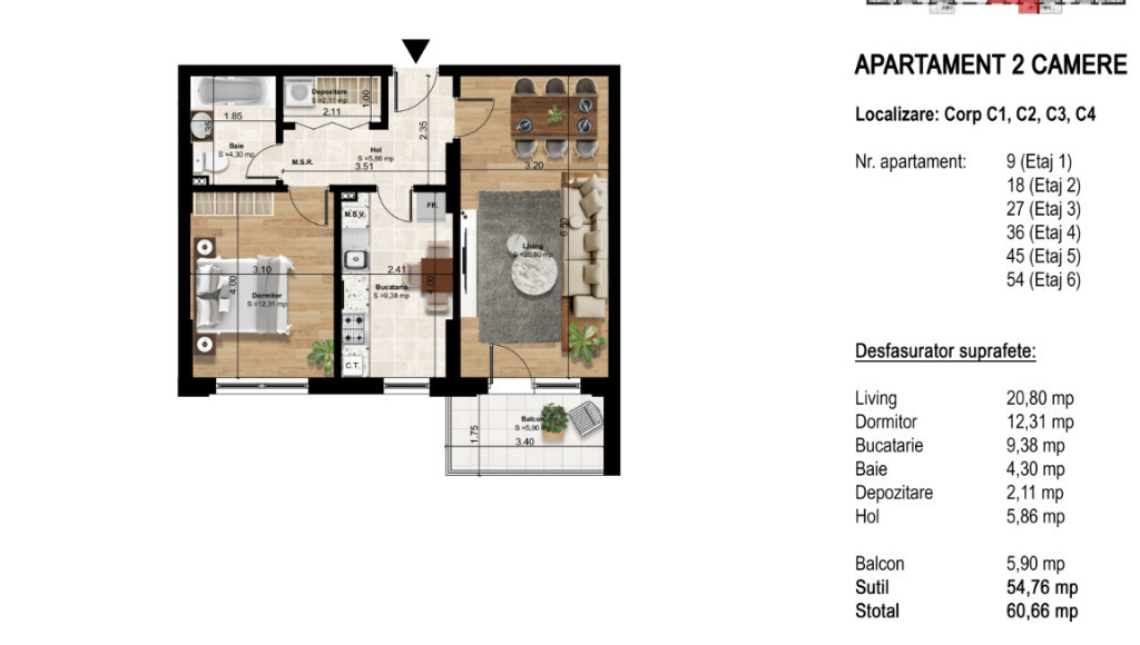 PROIECT NOU | Apartament 2 camere decomandat - 61 mp Suprafață: 61 mp Disponibila pe etaj intermediar Termen finalizare: Iulie 2026 Preț promotional pentru plata cash: 80.738 Euro. Preț pentru plata prin credit: 95.418 Euro Disponibilitate plata in rate la dezvoltator 3 sau 5 ani Ideal pentru investiție sau locuit, într-un ansamblu modern și o comunitate tânără! Consilier Imobiliar Eugen Mitrache & Alliance Rezidential 0793220912
