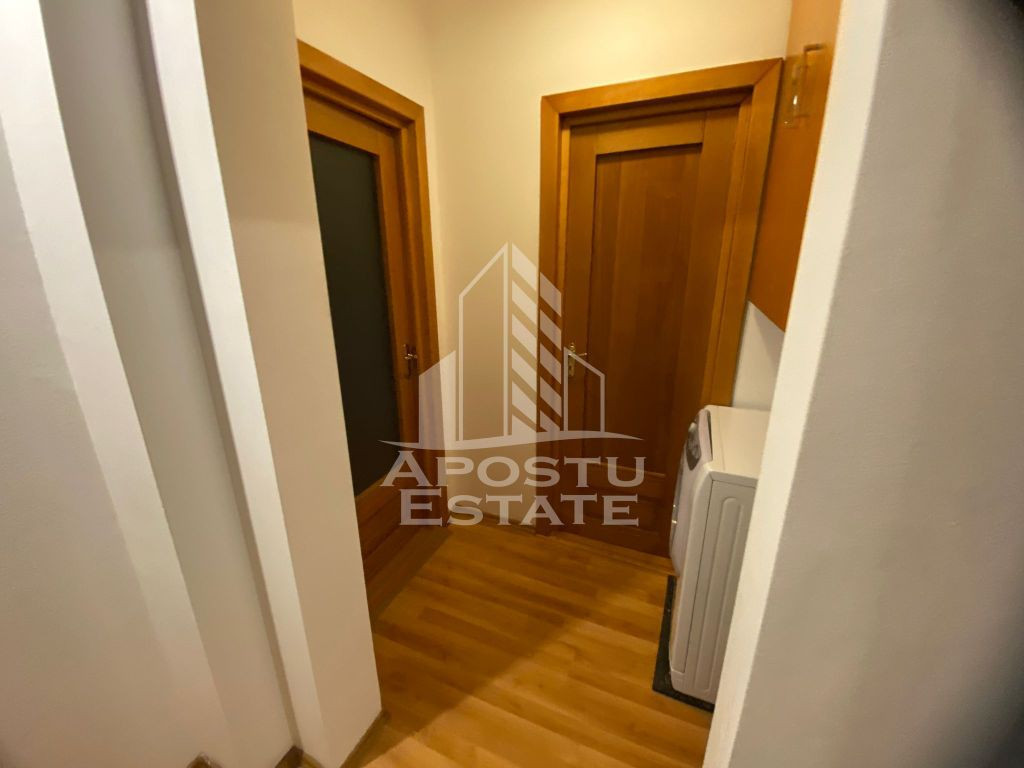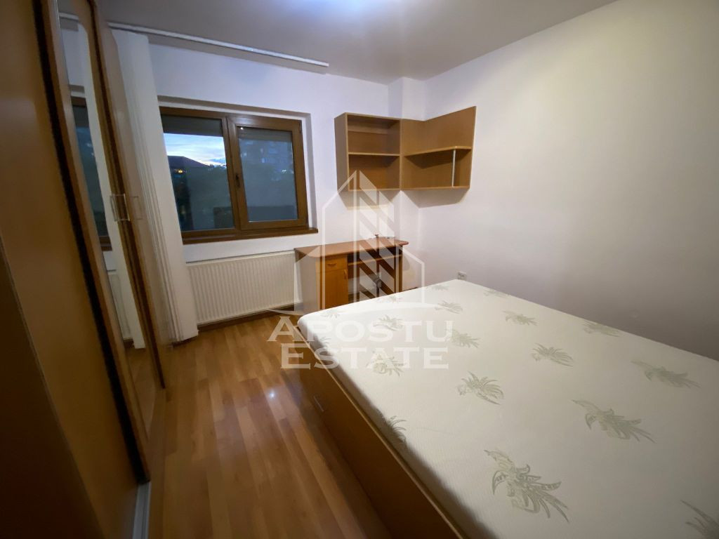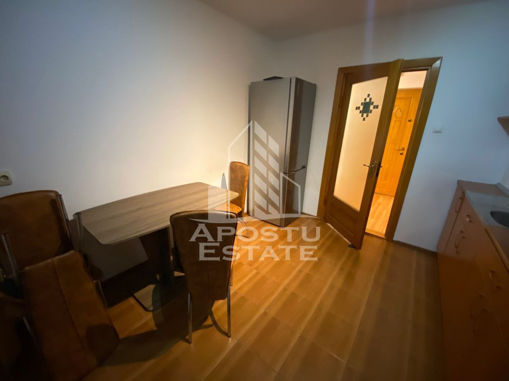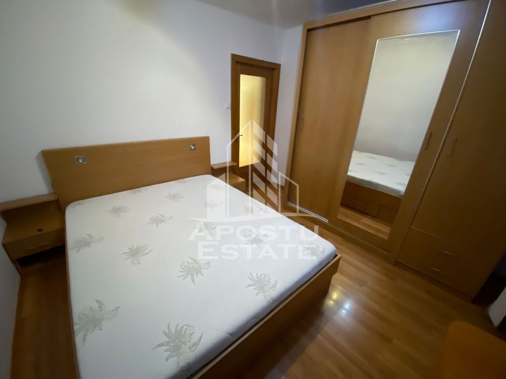 APOSTU ESTATE vă propune spre închiriere un apartament spațios și elegant, cu 2 camere, situat într-o zonă liniștită și bine conectată din Aradului, ideal pentru cupluri sau persoane care doresc un spațiu linistit și confortabil. Suprafață utilă: 50 mp Compartimentare eficientă: Hol de acces generos Bucătărie complet mobilată și utilată, cu loc de luat masa Living luminos și spațios Dormitor matrimonial mobilat Baie principală cu cadă și geam pentru ventilație naturală Balcon inchis spatios Confort și facilități: Confortul termic realizat prin Colterm Aer condiționat Apartamentul este complet mobilat și utilat Localizare: Zona Aradului – liniște, acces facil spre oraș, în apropiere de magazine, școli și mijloace de transport în comun. Ideal pentru: Persoane singure Cupluri Profesioniști care lucrează remote sau au nevoie de birou acasă Preț chirie: 420 Programează o vizionare! ID intern: CP2761843