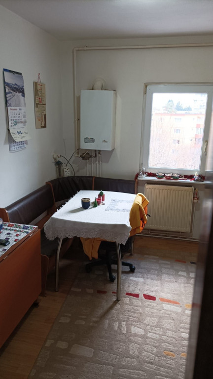 Apartament decomandat, etaj intermediar, situat in zona Astra- Soarelui Compus din 2 camere, bucatarie, baie, hol, balcon, mobilat si utilat Detine centrala termica proprie, termopan, gresie, faianta, parchet. Bloc izolat, boxa la subsol, loc de parcare concesionat. Pentru detalii suplimentare si vizionare, va rugam sa ne contactati ID intern:
