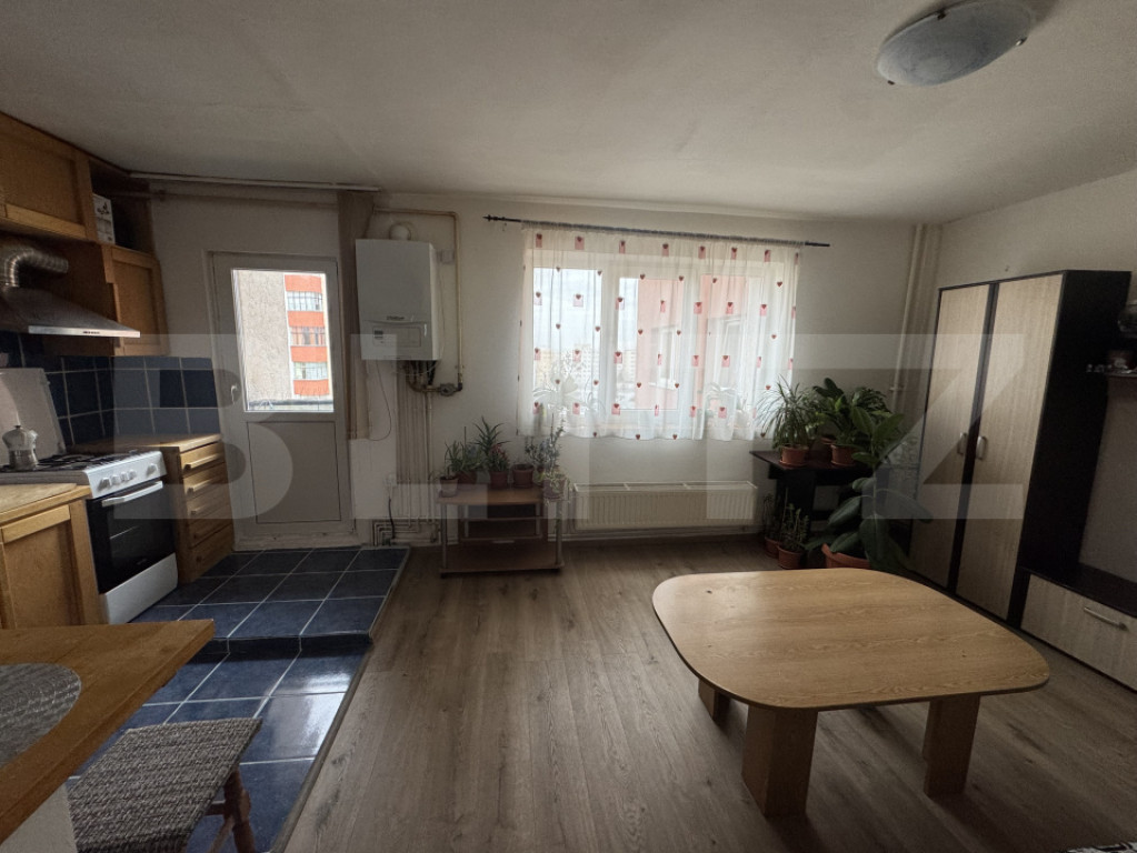 Blitz vă propune spre închiriere un apartament decomandat cu 2 camere, situat în cartierul Mănăștur, în apropierea Bazei Sportive „La Terenuri”. Locația oferă acces rapid la magazine, stații de transport în comun și spații verzi, fiind de asemenea o zonă liniștită. Apartamentul are o suprafață utilă de 43 mp, la care se adaugă un balcon, și este mobilat și utilat conform fotografiilor, fiind pregătit pentru mutare. Locuința dispune de centrală termică proprie, ceea ce permite un control optim al temperaturii și costuri reduse la întreținere. Compartimentarea este practică și eficientă, locuința fiind compusă din living cu bucătărie open space, dormitor separat, baie și hol cu spații de depozitare. Proprietatea este potrivită pentru o persoană sau un cuplu care își dorește un apartament bine poziționat, cu acces facil la facilitățile urbane, într-o zona liniștită. Pentru informații suplimentare sau programarea unei vizionări, vă stăm la dispoziție. Cod ofertă / ID BLITZ: P164106 Id intern: P164106