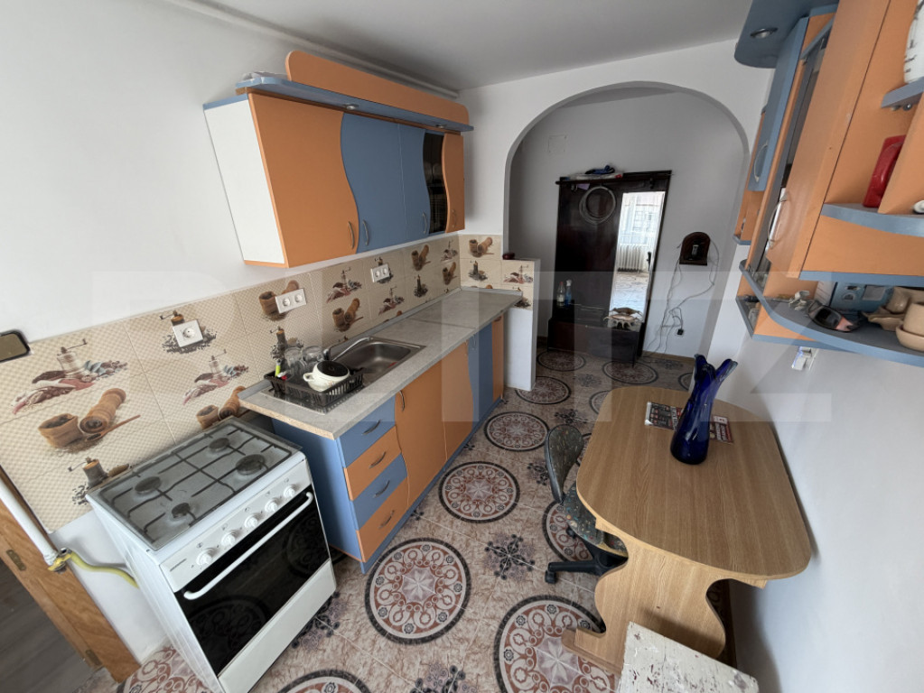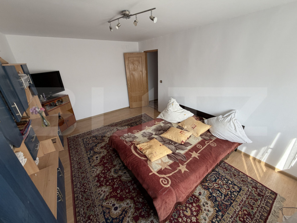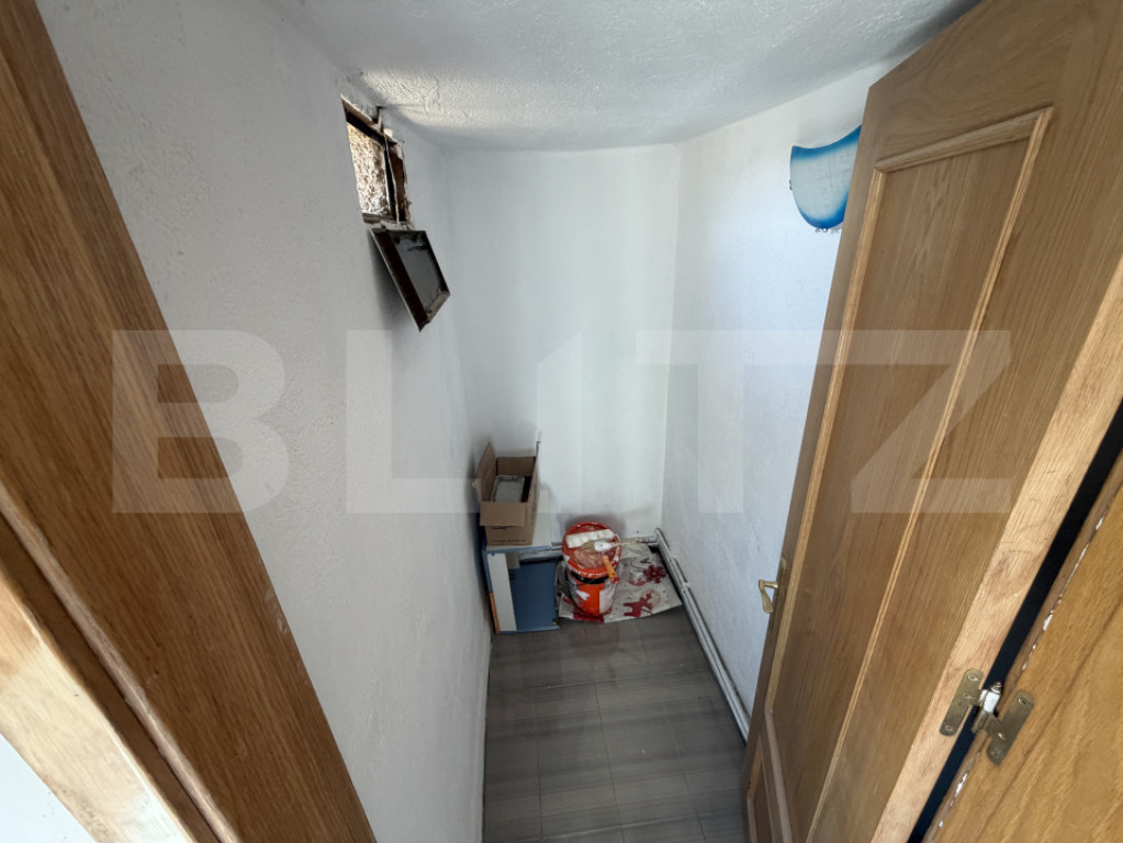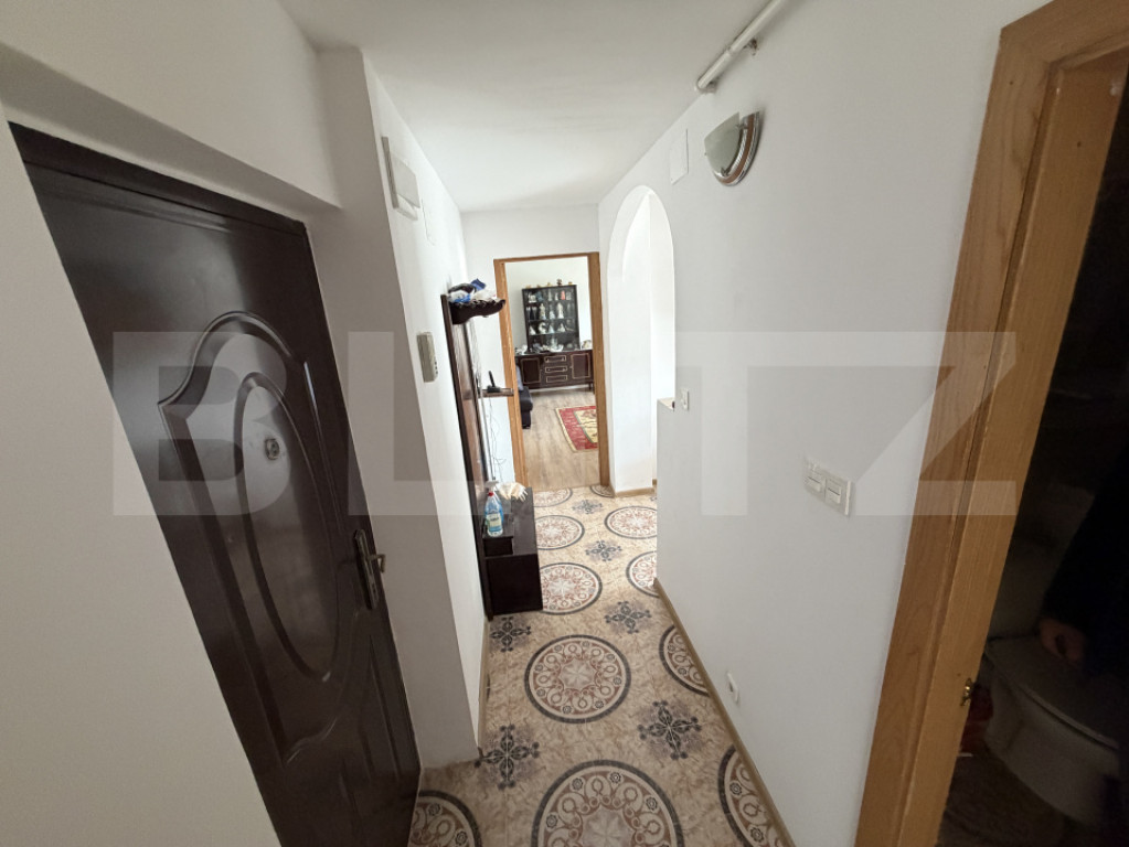 Blitz vă oferă spre vânzare un apartament cu 2 camere, decomandat, situat chiar în centrul municipiului Aiud, la etajul 4 al unui imobil bine poziționat, cu acces rapid către toate punctele de interes. Locuința dispune de un living generos, dormitor spațios, bucătărie separată, baie modernizată și hol larg cu spațiu de depozitare (debara). Compartimentarea este practică, fiecare încăpere având acces din hol, ceea ce oferă intimitate și confort. Apartamentul beneficiază de centrală termică proprie și calorifere, geamuri termopan și se vinde parțial mobilat. Spațiul este luminos, bine întreținut și potrivit atât pentru locuit, cât și pentru investiție. Poziționarea ultracentrală reprezintă un avantaj major, având în imediata apropiere magazine, școli, instituții publice și mijloace de transport. Cod ofertă / ID BLITZ: P165921 Id intern: P165921