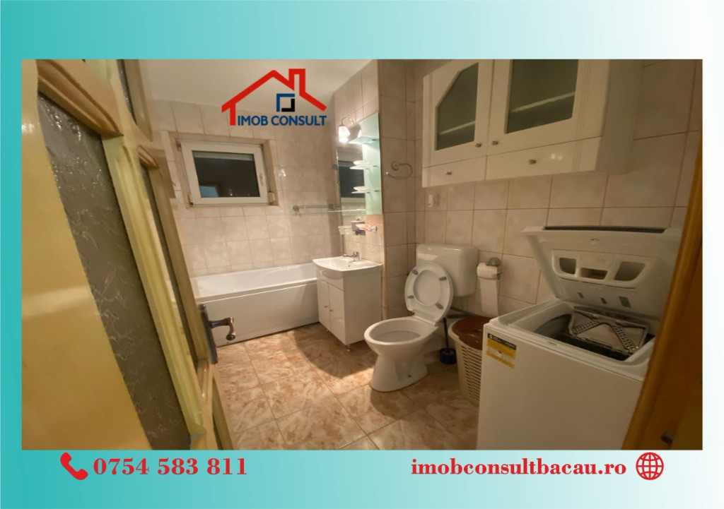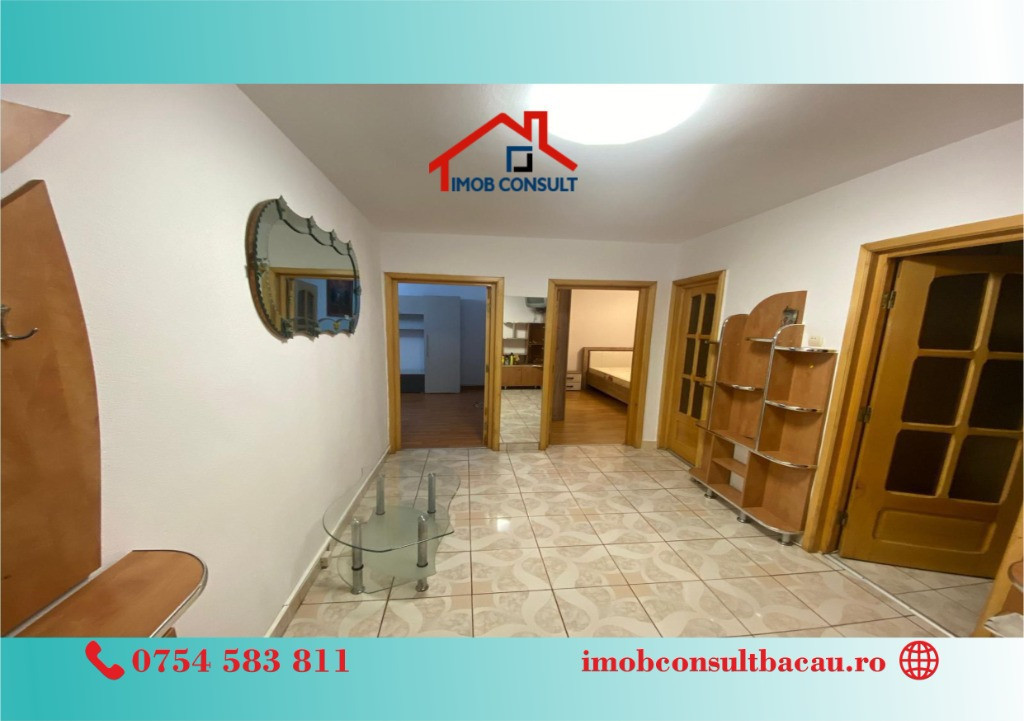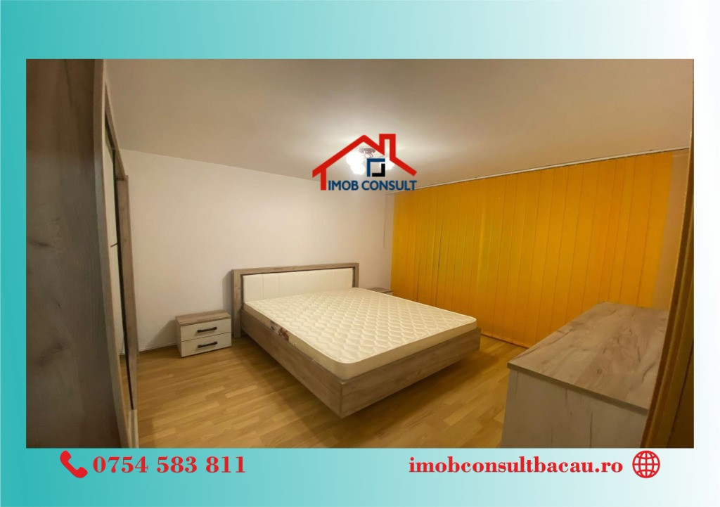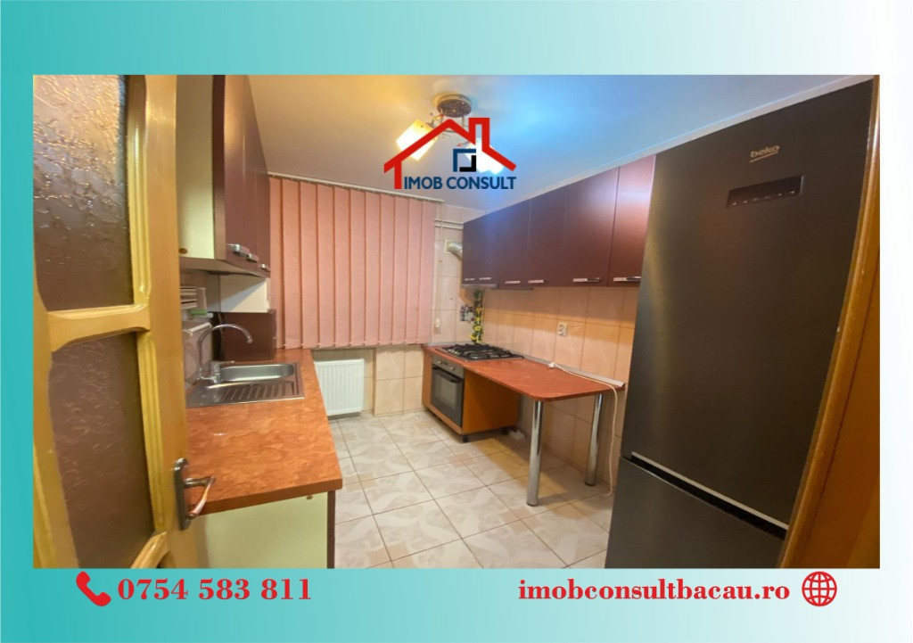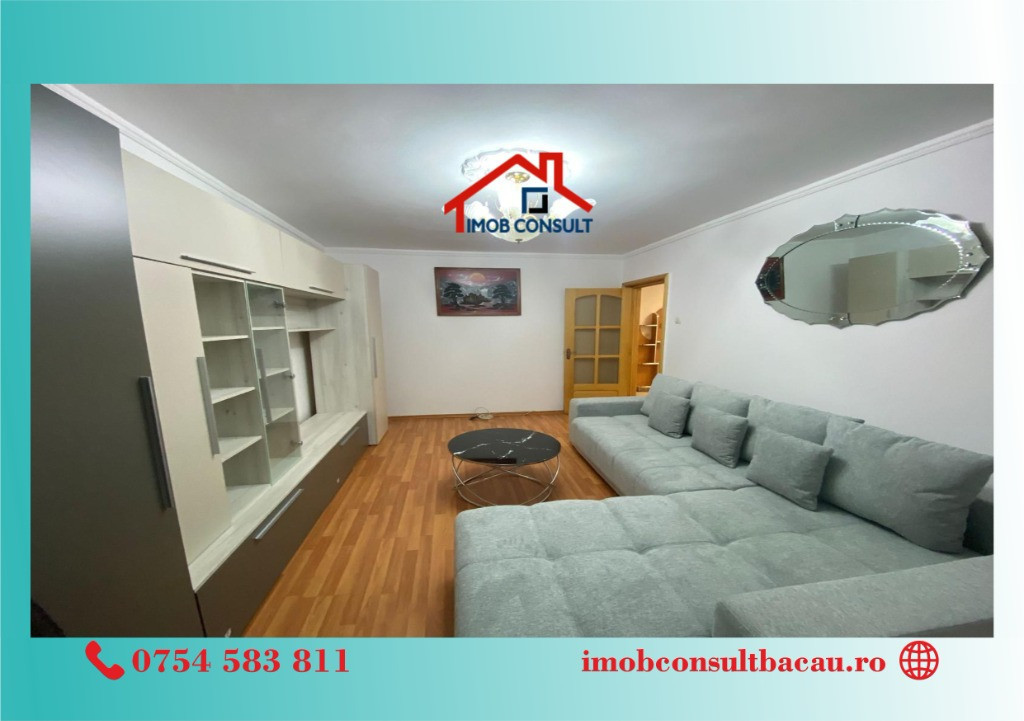 Imob Consult Bacau vă propune spre închiriere un apartament cu 2 camere, situat într-o zonă foarte bine cotată – Sala Sporturilor, ideal pentru rezidență. Apartamentul are compartimentare decomandată, beneficiază de o suprafață utilă generoasă și se remarcă printr-o luminozitate excelentă și o stare foarte bună de întreținere. Locuința este amplasată la parterul unui bloc cu 4 etaje, bloc izolat termic, și dispune de balcon închis, centrală termică proprie, asigurând confort pe tot parcursul anului. Se închiriază complet mobilată și utilată, fiind pregătită pentru mutare imediată. O proprietate potrivită pentru cei care își doresc confort, funcționalitate și acces facil către punctele de interes ale orașului. Pentru vizionari si relatii suplimentare, contacteaza-ne: - Cosmin: 0754 583 811; - Corina: 0740 288 297, sau la sediul agenției noastre, Imob Consult Bacau, situat pe strada Banca Națională nr. 27 la intersecția cu Str. Neagoe Vodă, langa Irish Pub.