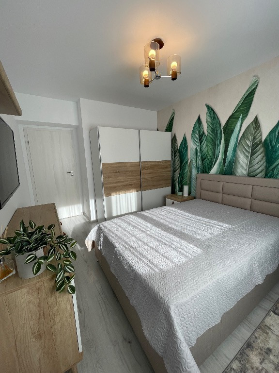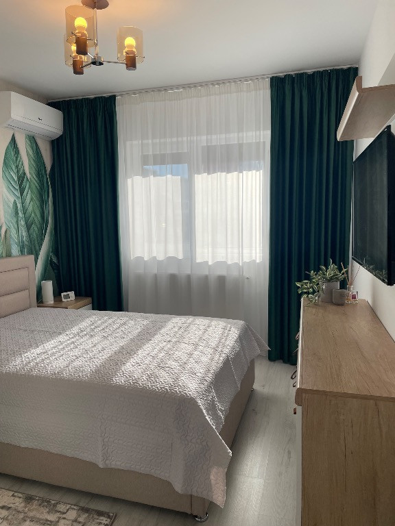 Apartamentul are 2 camere decomandate și este situat la etajul 3 din 6, într-un bloc finalizat în august 2023, prevăzut cu lift, pe strada Biruinței. Este mobilat în stil modern, cu mobilier Mobexpert din MDF, și dispune de numeroase spații de depozitare. Locuința este dotată cu centrală termică proprie, două aparate de aer condiționat tip invertor, frigider, mașină de spălat rufe, aragaz pe gaz, cuptor electric, cuptor cu microunde, două televizoare precum și rulouri exterioare la toate ușile și ferestrele și plase de țânțari. Apartamentul se vinde complet mobilat și utilat. Suprafața totală este de 59 mp, din care 50,50 mp suprafață utilă și 8,50 mp balcon. Mutare imediată. Loc de parcare suprateran disponibil la pretul de 6500 euro. Locuintă ideală pentru locuit cât și ca investiție. În apropiere se află scoală, gradinite, supermarket-uri și statie de metrou la 17 minute distanță de mers pe jos.