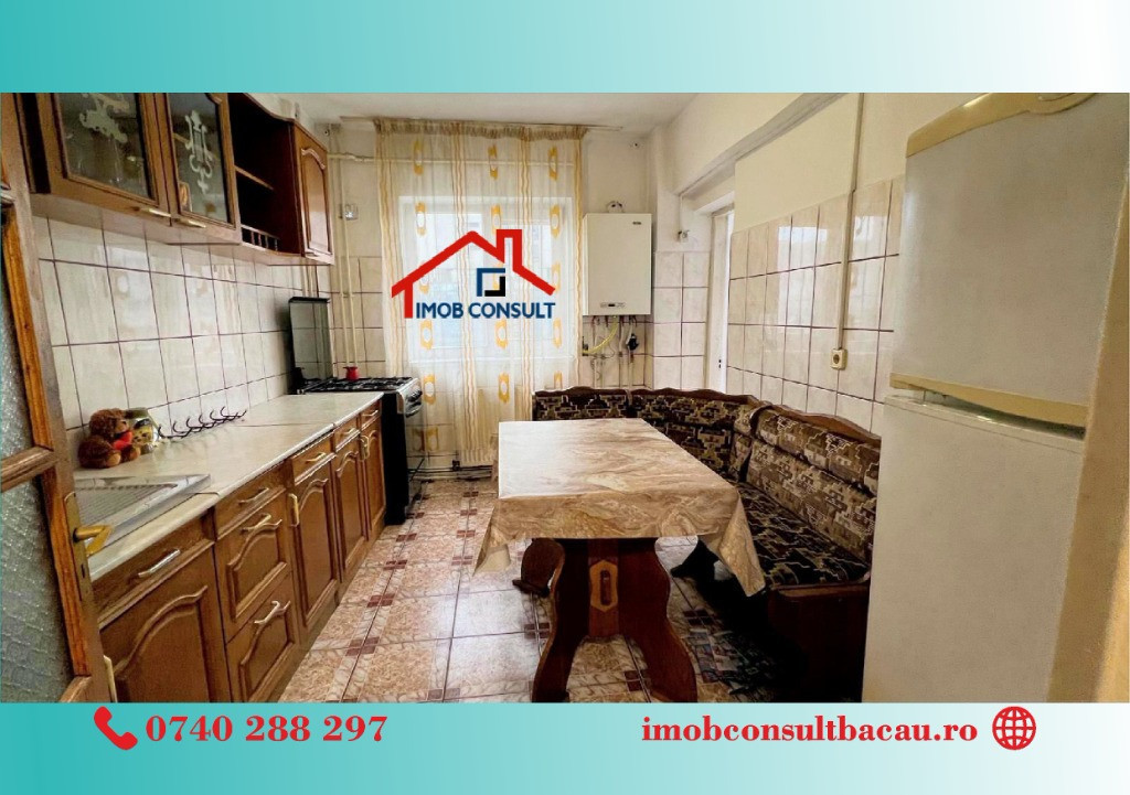 Imob Consult Bacău îți prezintă spre închiriere un apartament spațios, bine poziționat și gata de mutare, ideal pentru un stil de viață confortabil! Situat într-o zonă excelentă, în apropierea intersecției Ștefan cel Mare – Mioriței, apartamentul oferă acces rapid către magazine, mijloace de transport, instituții și alte puncte de interes . Locuința este amplasată la etaj intermediar, într-un bloc bine întreținut, și beneficiază de o compartimentare decomandată, ce oferă intimitate și funcționalitate. Dispune de un hol generos, două camere luminoase, o baie spațioasă și două balcoane închise, ideale atât pentru relaxare, cât și pentru depozitare . Apartamentul este dotat cu centrală termică proprie și tâmplărie PVC cu geam termopan, asigurând confort termic și liniște. Se închiriază complet mobilat și utilat , fiind pregătit pentru mutare imediată. Sună acum pentru detalii sau programare vizionare: - Corina: 0740 288 297; - Cozmin: 0754 583 811, Te așteptăm și la sediul agenției Imob Consult Bacău (Str. Banca Națională nr. 27, la intersecția cu Neagoe Vodă) pentru mai multe oferte! Programează o vizionare chiar azi și descoperă viitorul tău cămin!
