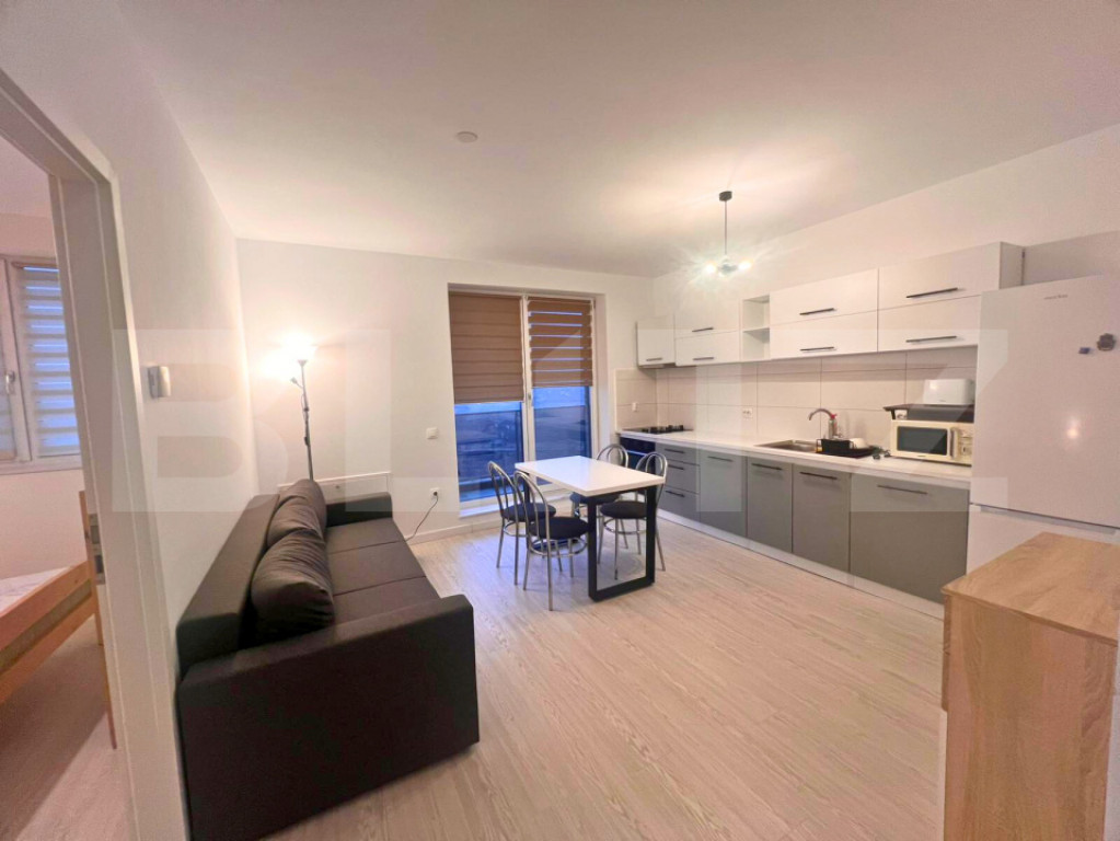 BLITZ Imobiliare vă propune spre închiriere un apartament modern și luminos, situat în ansamblul rezidențial Beta Residence, Chinteni, într-o zonă extrem de liniștită, ideală pentru cei care își doresc confort și relaxare, dar și acces facil către oraș și transport public. Apartamentul este decomandat, cu încălzire în pardoseală și dispune de living luminos cu bucătărie open space, dormitor matrimonial cu pat dublu și mobilier din lemn, baie spațioasă cu cadă, balcon și o a treia cameră amenajată în prezent ca dressing care poate fi transformată cu ușurință în birou sau chiar dormitor. Bucătăria este complet utilată și oferă multiple spații de depozitare fiind dotată cu plită electrică și pe gaz, frigider, mașină de spălat și aspirator, iar imobilul este foarte bine izolat termic și beneficiază de ventilație în fațadă, oferind un climat interior plăcut pe tot parcursul anului și costuri reduse de întreținere. Apartamentul dispune de parcare subterană, loc de joacă în apropiere și boxă la mansardă de aproximativ 10mp, ideală pentru depozitare suplimentară. Locuința se închiriază complet mobilată și utilată, fiind pregătită pentru mutare imediată. Cod ofertă / ID BLITZ: P164679 Id intern: P164679