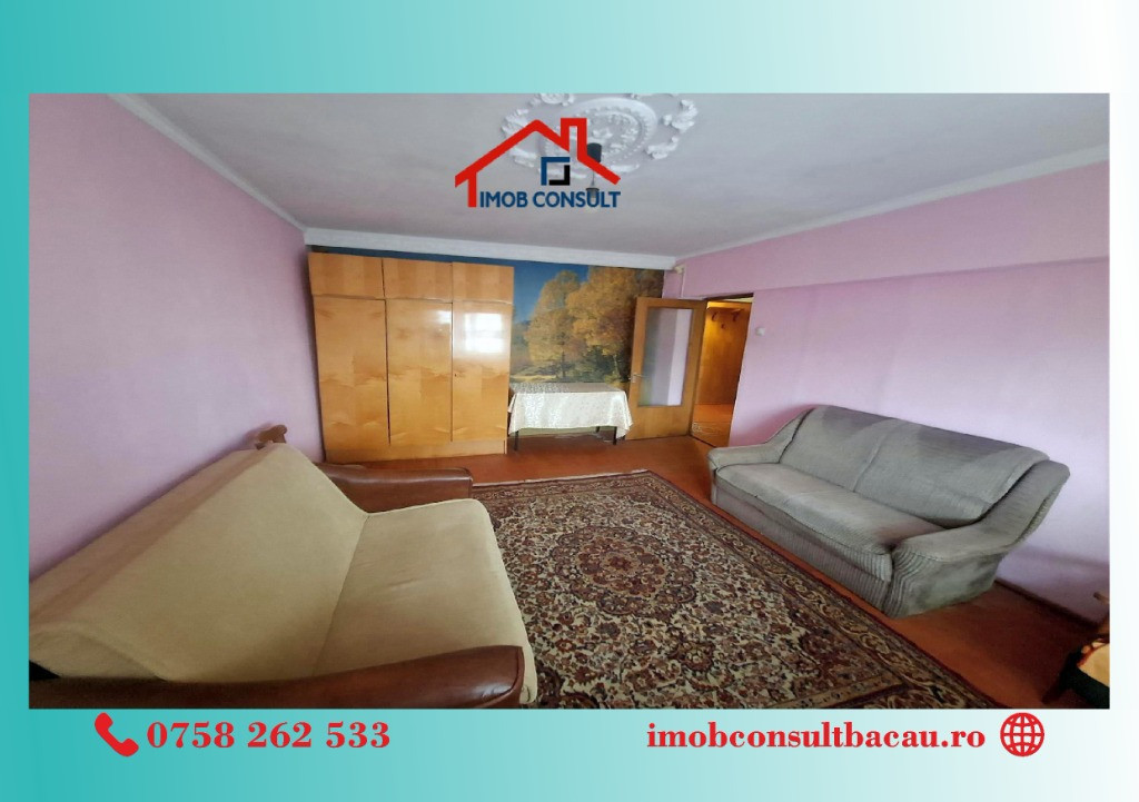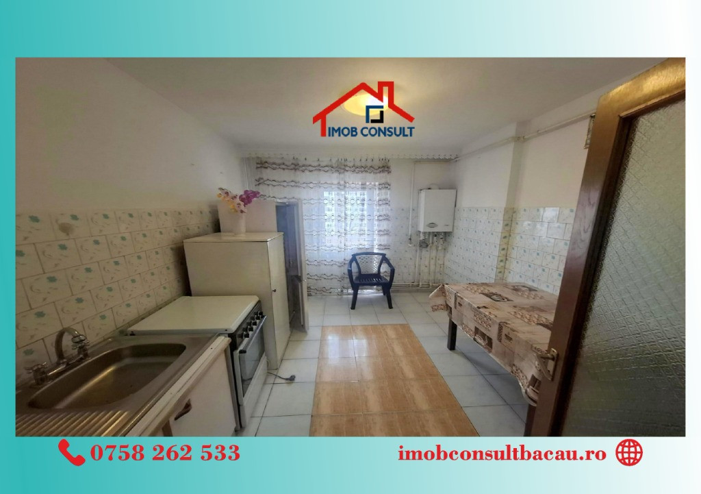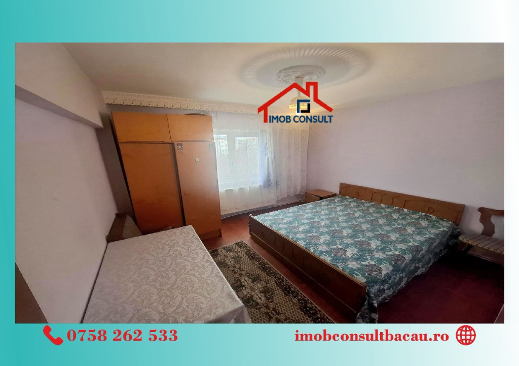 Imob Consult Bacău vă propunem spre închiriere un apartament cu 2 camere, compartimentare decomandată, situat la etajul 2 al unui imobil cu 4 niveluri, amplasat în apropierea Liceul Sportiv, pe strada 9 Mai. Locuința are o compartimentare practică și funcțională, fiind compusă din living, dormitor, bucătărie separată, baie cu geam pentru aerisire naturală și balcon închis. Apartamentul beneficiază de centrală termică proprie, asigurând un confort termic optim și costuri eficiente de întreținere. Tâmplăria PVC cu geam termopan contribuie la o bună izolare termică și fonică. Imobilul se închiriază complet mobilat și utilat, fiind pregătit pentru mutare imediată. Este o alegere potrivită pentru un cuplu, o persoană activă sau pentru cei care își doresc acces facil către punctele de interes din zonă. Pentru mai multe detalii sau pentru programarea unei vizionări, nu ezitați să ne contactați: • Ioana: 0758 262 533; • Corina: 0740 288 297, Vă așteptăm și la sediul agenției noastre, Imob Consult Bacau, situat pe strada Banca Națională nr. 27, la intersecția cu Str. Neagoe Vodă, lângă Irish Pub Bacau.