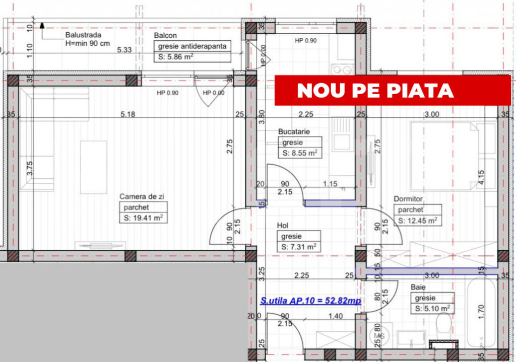 Apartament 2 camere decomandat – loc de parcare 53MP