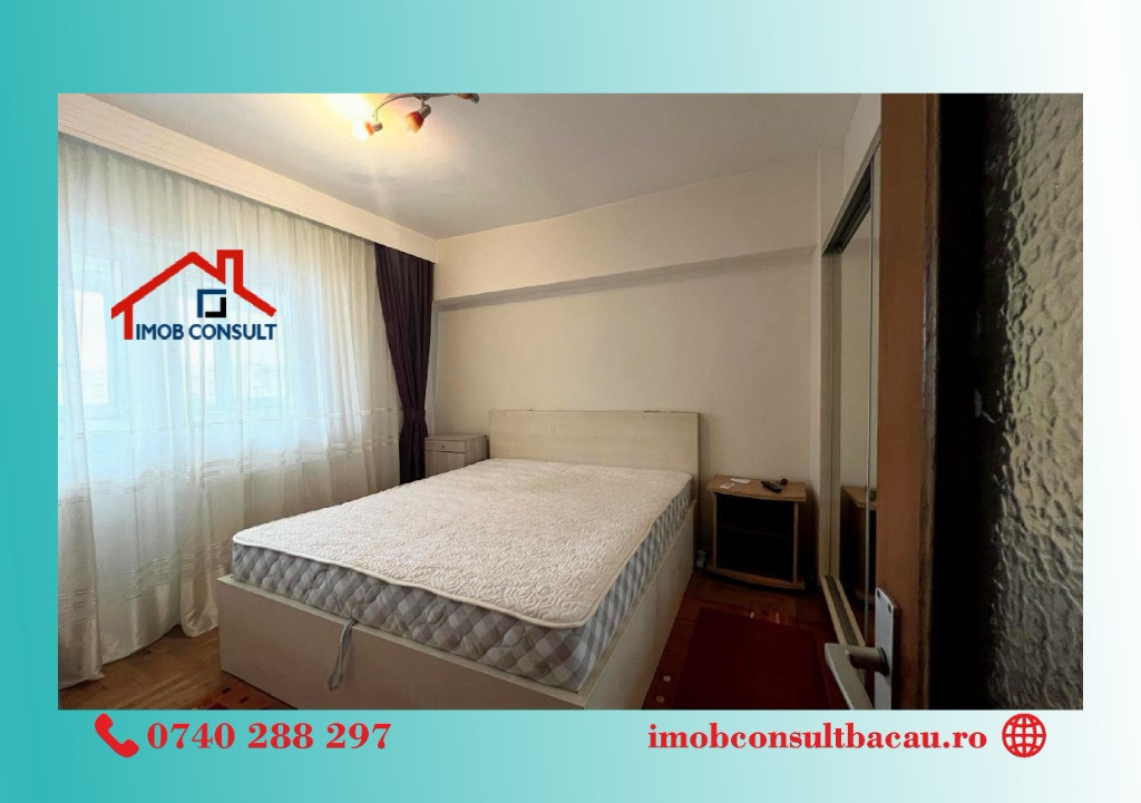 Imob Consult Bacău vă propune spre închiriere un apartament primitor, situat într-un imobil rar întâlnit în Bacău, cu regim de înălțime redus (P+4) și dotat cu lift – un real avantaj pentru confortul zilnic. Poziționarea excelentă, în imediata apropiere a Parcului Catedralei, oferă acces rapid către zone de interes, spații verzi și puncte importante ale orașului. Locuința se remarcă prin compartimentarea practică și luminoasă, beneficiind de două balcoane, ideale pentru relaxare, precum și de baie cu geam pentru ventilație naturală. Apartamentul este dotat cu centrală termică proprie, asigurând control optim al temperaturii și costuri eficiente. Proprietatea se închiriază complet mobilată și utilată, fiind pregătită pentru mutare imediată. Pentru mai multe detalii și programarea unei vizionări, vă stăm la dispoziție: • Corina – 0740 288 297, Ne găsiți și la sediul agenției Imob Consult Bacău, situat la intersecția cu Strada Neagoe Vodă, lângă Irish Pub. Vă invităm să programați o vizionare și să descoperiți locul pe care îl puteți numi „acasă”.