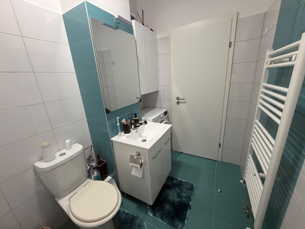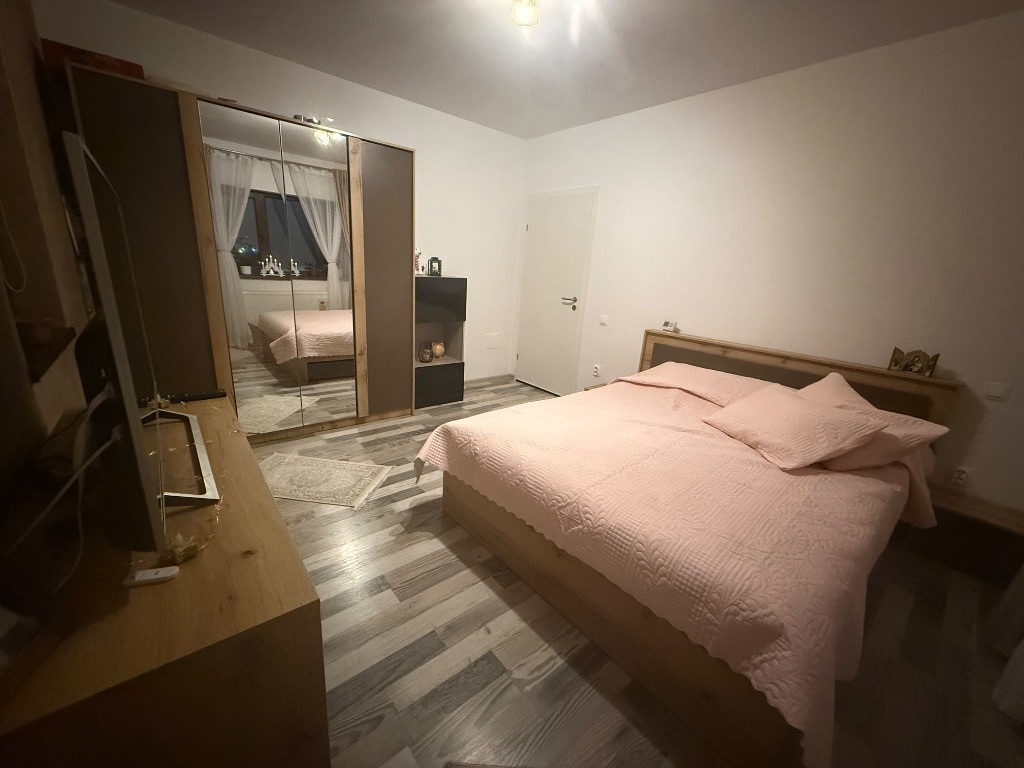 Vând apartament cu 2 camere, decomandat, situat la etajul 3 într-un bloc cu regim de înălțime P+2E+M, ce cuprinde doar 12 apartamente. Imobilul este finalizat în toamna anului 2019 și este amplasat pe strada Galaxiei, în cartierul Sânpetru Residence, intr-o zona rezidențială liniștită. Accesul se face pe drum asfaltat, iar stația de autobuz se află la aproximativ 15–20 m de bloc. În imediata apropiere (3–5 minute de mers pe jos) se regăsesc: aprozar, magazin alimentar și locuri de joacă pentru copii. Compartimentare: • Living: 18,25 mp • Dormitor: 14,70 mp • Bucătărie: 11,34 mp • Baie: 4,73 mp • Hol: 8,52 mp • Terasă: 6,53 mp Total suprafata utila 58 mp fara suprafata balconului Apartamentul beneficiază de loc de parcare privat. Accesul la pod se face de pe casa scării, deasupra apartamentului existând spațiu de depozitare. Se vinde complet mobilat și utilat, conform pozelor, incluzând: • mașină de spălat rufe • mașină de spălat vase • combină frigorifică • aer condiționat inverter cu Wi-Fi Dotări și finisaje: • centrală termică proprie Saunier Duval • ferestre tripan cu tâmplărie Rehau și feronerie Roto • ușă metalică • fibră optică DIGI până în apartament • prize de internet în fiecare cameră Se acceptă orice variantă de plată, însă nu se acceptă schimburi. Pentru informații suplimentare, poze sau programarea unei vizionări, vă rog să mă contactați. Pretul este 99000EURO Tel: (0743) 281 733