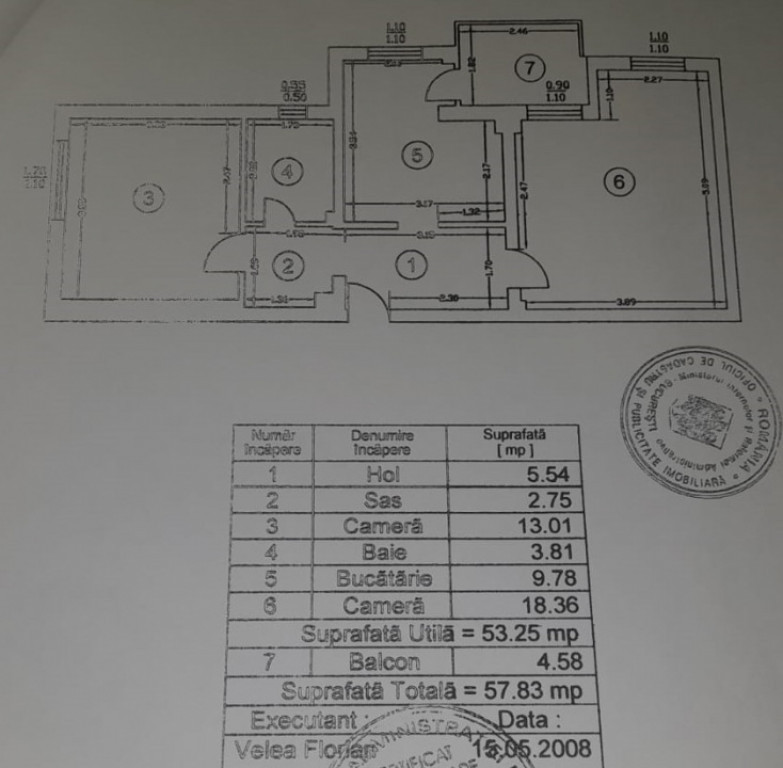 - Suprafaţa utilă: 53,25 metri pătraţi;
