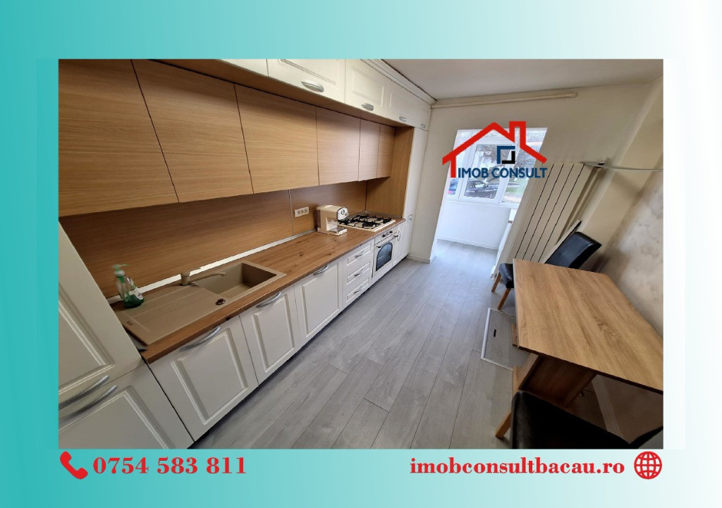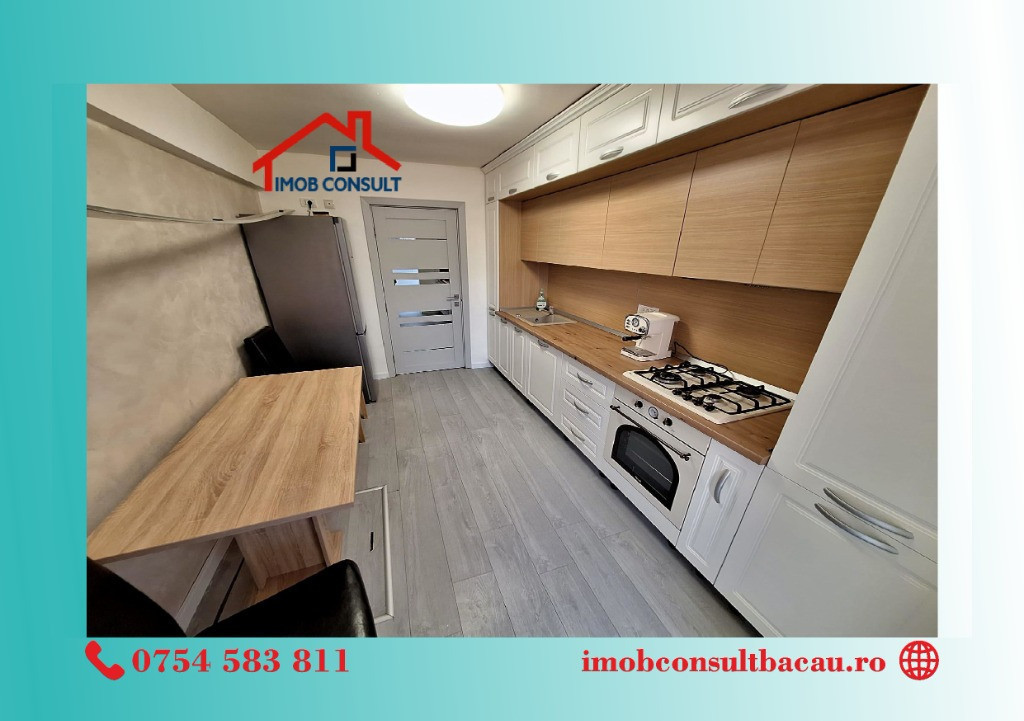 IMOB CONSULT Bacău vă propune spre închiriere un apartament modern cu 2 camere, compartimentare decomandată, situat într-un bloc amplasat pe strada Mioriței. Locuința este recent renovată și se remarcă prin finisaje de calitate, mobilier realizat pe comandă și un ambient plăcut, pregătit pentru mutare imediată. Apartamentul dispune de: • compartimentare decomandată, eficientă și confortabilă; • living luminos și dormitor spațios; • balcon închis; • bucătărie complet mobilată și utilată; • baie modernă; • centrală termică proprie; • tâmplărie PVC cu geam termopan; • mobilier realizat pe comandă, de bună calitate; • se închiriază complet mobilat și utilat. Imobilul este ideal pentru persoane care își doresc confort, liniște și acces facil către punctele de interes ale orașului. Pentru mai multe detalii sau pentru programarea unei vizionări: • Cozmin: 0754 583 811; • Corina: 0740 288 297, Vă așteptăm și la sediul agenției IMOB CONSULT Bacău, situat pe Strada Banca Națională nr. 27, la intersecția cu Strada Neagoe Vodă. Echipa noastră vă stă la dispoziție pentru a vă oferi toate informațiile necesare și pentru a vă sprijini în alegerea locuinței potrivite.