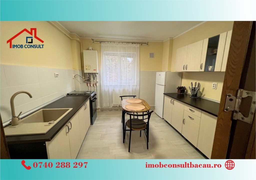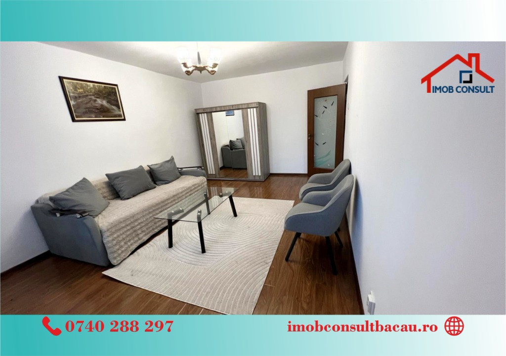 Vă propunem spre închiriere un apartament luminos și primitor cu 2 camere, decomandat, situat la etajul 2 al unui bloc cu 4 niveluri (etaj intermediar), într-una dintre cele mai accesibile și căutate zone ale orașului – 9 Mai / Piața Centrală. Caracteristici principale: • Suprafață bine compartimentată, cu un flux optim între încăperi • Living spațios și dormitor confortabil • Balcon ideal pentru relaxare • Bucătărie complet mobilată și utilată • Baie modernă, aflată în stare foarte bună • Apartament mobilat complet, gata pentru mutare imediată Avantaje zonă: • Proximitate față de Piața Centrală, magazine, piață agroalimentară • Acces rapid la mijloace de transport în comun • Școli, grădinițe, farmacii și alte puncte de interes în apropiere Apartmentul este disponibil imediat și reprezintă o alegere excelentă pentru persoane sau cupluri care caută confort și accesibilitate într-o zonă centrală. Contactează-ne pentru detalii și programarea unei vizionări! - Corina: 0740 288 297; - Ioana: 0758 262 533, sau la sediul agenției noastre, Imob Consult Bacau, situat pe strada Banca Națională nr. 27 la intersecția cu Str. Neagoe Vodă, langa Irish Pub.