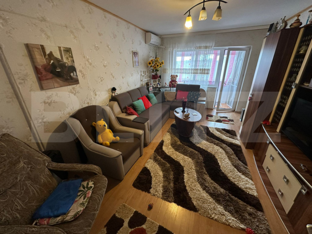 BLITZ vă propune spre vânzare un apartament cu 2 camere, decomandat, situat la etajul 4 al unui bloc turn cu 10 niveluri, dotat cu lift nou și o scară spațioasă, îngrijită. Locuința are o suprafață utilă de 56 mp și este amplasată într-un bloc din cărămidă, construit în 1977, reabilitat termic recent. Este complet mobilată și utilată, dispune de centrală termică proprie, calorifere, aer condiționat și balcon închis. Interiorul este renovat, luminos și bine întreținut, compartimentat astfel: un hol generos din care se face accesul în toate încăperile, bucătărie separată fără ușă dar cu delimitare clară de living, dormitor confortabil și baie cu geam pentru aerisire naturală. Se vinde liber, disponibil imediat. Apartamentul dispune de rolete exterioare PVC și se află într-o zonă foarte bună – Miorița, aproape de puncte comerciale, școli și mijloace de transport. Programează o vizionare și vezi locul unde te poți muta imediat! (câinele din poză nu e de vânzare) Cod ofertă / ID BLITZ: P156961 Id intern: P156961