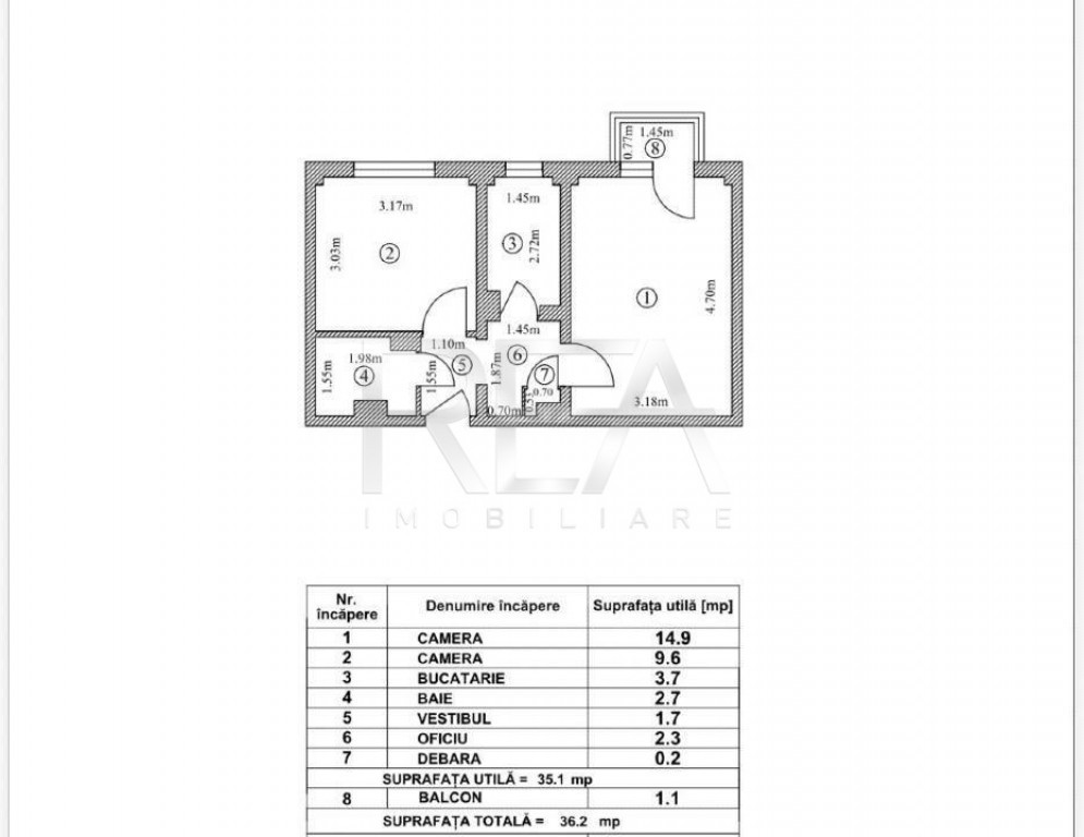 REA Imobiliare va propune spre vanzare un apartament decomandat cu 2 camere, situat pe Strada Resita. Imobilul se afla situat la etajul 5 al unui bloc cu 10 etaje , blocul a fost construit in 1974. Blocul a fost anvelopat in anul 2024 , tot atunci liftul a fost inlocuit cu unul nou. Locuinta este compusa din: dormitor, bucatarie, hol, baie, balcon si living. Suprafata totala este de 36,2mp din care utili 35,1mp iar restul de 1,1mp de balcon. Confortul termic este realizat cu ajutorul sistemului de termoficare al orasului. Se poate trece pe centrala termica proprie , teava de gaze este trasa pe palier. In imediata apropiere regasim o multitudine market-uri, farmacii, locuri de joaca, centre educationale si altele. Acces facil la mijloacele de transport in comun: statie STB "Straja" in proximitatea blocului , aproximativ 1 minut distanta de mers pe jos si statia de metrou "Piata Sudului la 4 statii distanta , aproximativ 15 minute de mers cu autobuzul. Pentru alte detalii si vizionari ne puteti contacta mentionand codul proprietatii: P9258. Id intern: P9258