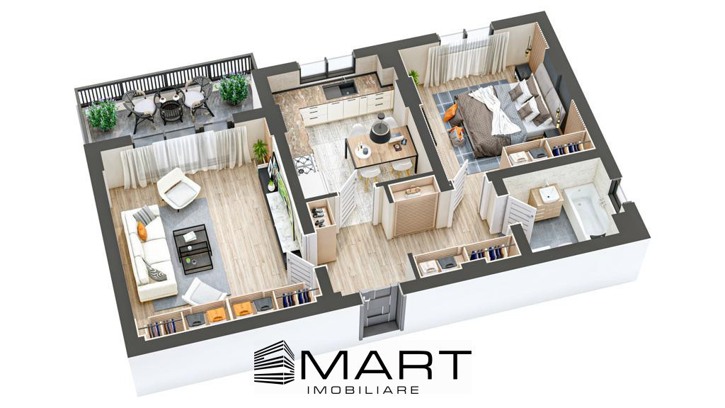 Apartament 2 camere decomandate 60mp + 5mp balcon zona Cires