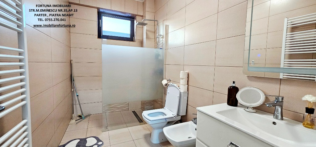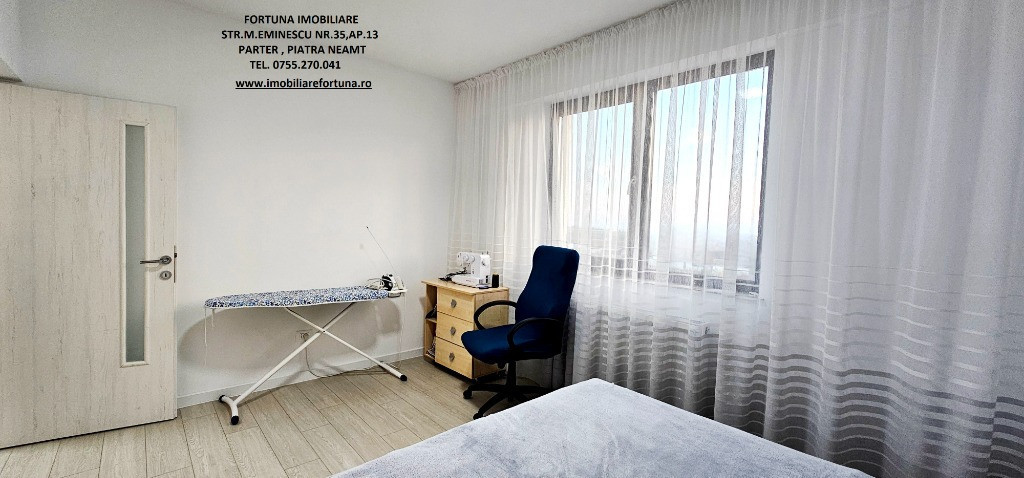 APARTAMENT 2 CAMERE DECOMANDATE, ETAJUL 2, CU LOC DE PARCARE, BLOC NOU, ZONA FERMELOR , 92.000 EURO Dacă sunteți în căutarea unui imobil pentru locuit sau pentru o investiție imobiliară, FORTUNA IMOBILIARE vă supune atenției acest apartament cu 2 camere decomandate, ce răspunde tuturor categoriilor de vârstă, amplasat la etajul 2, într-un bloc nou, cu 4 etaje, din zona Fermelor, Municipiul Piatra Neamț. Apartamentul are suprafața utilă de 59,6 mp + 9,3 mp suprafața balcon, suprafața totală de 68,9 mp, este compus din hol, bucătărie și living open space, balcon mare tip terasă cu ieșire din living, baie cu aerisire naturală, dressing și dormitor. Are orientare cardinală SUD, poziționare pe mijloc și termosistem exterior integral. Imobilul beneficiază de ușă antiefracție, acces controlat prin interfon, centrală termică, tâmplărie termopan, gresie, faianță, parchet din compozit rezistent la apă. Se vinde mobilat și utilat cu tot necesarul unui trai confortabil, așa cum este prezentat în fotografii : mobilă realizată la comandă și de la IKEA, mașină de spălat vase, mașină de spălat rufe, combină frigorifică, cuptor electric și plită cu inducție GORENJE. Deține loc de parcare. Dispoziția posesiei imobilului se face la semnarea actelor la notariat. Preț 92.000 euro. Pentru o prezentare detaliată a acestei oferte, furnizarea unor informații suplimentare referitoare la situația juridică / identificarea imobilului și programarea unei vizionări, vă invităm la sediul nostru, Fortuna Imobiliare, situat pe str. M. Eminescu, nr. 35, ap. 13, parter, lângă fostul Tribunal, tel. contact 0755.270.041. Your comfort is our priority ! Oferta noastră completă o găsiți aici: https://imobiliarefortuna.ro/