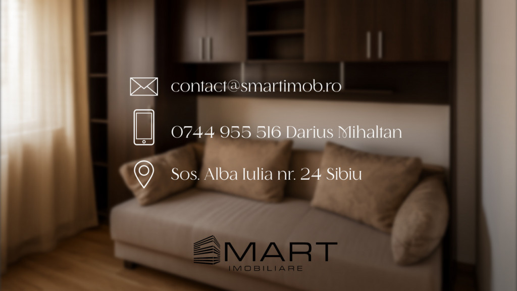 P18152 Smart Imobiliare propune spre închiriere un apartament cu 2 camere, situat în Sibiu, în zona , pe strada Bulevardul Mihai Viteazul, având o suprafață utilă de aproximativ 50 mp (60 mp suprafață construită). Apartamentul este amplasat la etaj 5 al unui imobil cu 8 niveluri și se remarcă prin poziționarea bună cu acces facil către mijloace de transport în comun, magazine, farmacie, supermarket, scoală, grădiniță, spații verzi. Compartimentarea este gândită practic și include un living confortabil, 1 dormitor, 1 bucătărie, 1 baie și hol de acces. Apartamentul dispune de 1 balcon cu o suprafață totală de aproximativ 8 mp oferind spații suplimentare pentru relaxare. La nivel de dotări, apartamentul beneficiază de curent electric, apa, canalizare, gaz, sistem de încălzire prin climatizare, ferestre tip termopan, pardoseli parchet, gresie, pereți finisați cu vopsea lavabila, izolatie în exterior cu termosistem de 10cm, usă de intrare de , respectiv uși de interior . Apartamentul se închiriază mobilat , cu bucataria , aspect care permite viitorului chiriaș să se mute rapid și cu investiții minime în amenajare. Imobilul în care se află apartamentul este de tip bloc, cu structură caramida și eficiență energetică , ceea ce contribuie la costuri de întreținere echilibrate. În zonă există locuri de parcare disponibile publice. Prin poziționare, compartimentare și dotări, acest apartament este potrivit pentru [cuplu/familie/persoană activă] care își dorește o locuință de închiriat într-o zonă bine conectată și într-un imobil îngrijit, dar poate reprezenta și o variantă bună pentru cei care caută o locuință temporară pe termen mediu sau lung în Sibiu. Prețul de promovare este de 350€ /negociabil în funcție de condițiile stabilite împreună cu proprietarul. Pentru mai multe detalii despre această proprietate și pentru programarea unei vizionări, vă rugăm să contactați consultantul responsabil. Smart Imobiliare vă oferă consultanță completă pe tot parcursul tranzacției, de la prima vizită și până la predarea cheilor. Id intern: P18152