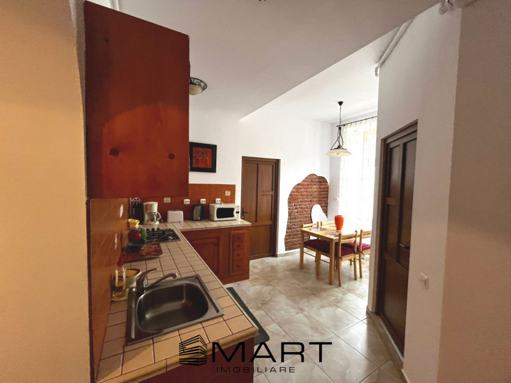 Smart Imobiliare propune spre inchiriere un apartament deosebit cu 2 camere decomandate situat la etajul I al unei case in zona Centrului Istoric al orasului.Suprafata utila de 64 mp se compune din bucatarie cu loc de servit masa, doua dormitoare si baie.Apartamentul se inchiriaza complet utilat si mobilat cu obiecte de cea mai buna calitate si care corespunde chiiar si gusturilor cele mai rafinate.incalzirea se face cu centrala proprie si utilitatile sunt contorizate separat.Amplasarea il face sa fie in cea mai turistica zona a orasului si implicit in apropierea tuturor obiectivelor importante. Pentru mai multe detalii va rugam sa contactati agentul si sa specificati ID ul proprietatii P17227 Id intern: P17227