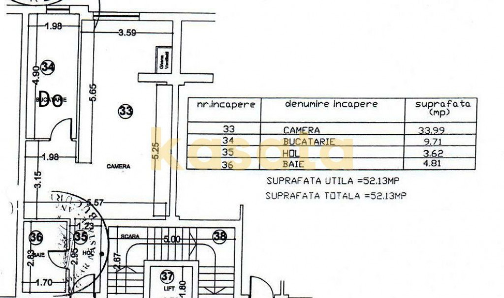 Suprafața utilă 52 m²