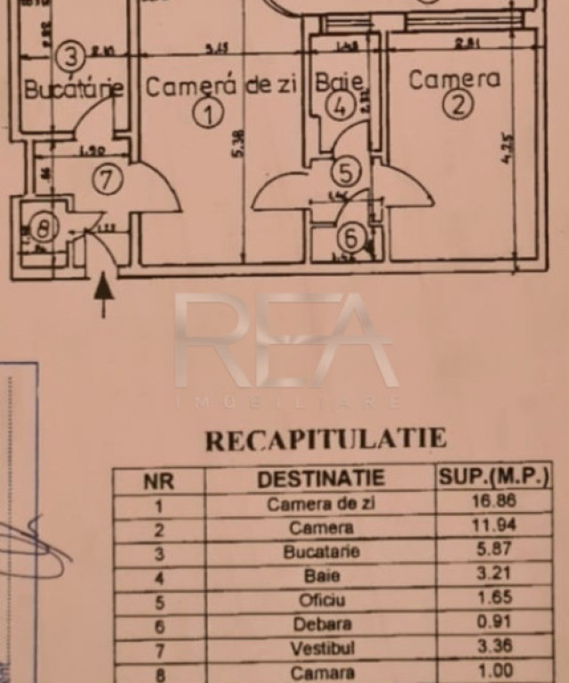 R.E.A. Imobiliare va ofera spre vanzare un apartament cu 2 camere, semidecomandat situat in Drumul Taberei, pe Str. Sibiu. Imobilul se afla intr-un bloc de apartamente construit in anul 1968, fara risc seismic, la etajul 8/8. Este alcatuit din living, dormitor, bucatarie, baie, si un balcon. Suprafata totala este de 49,5 mp, din care suprafata utila este de 45 mp, la care se adauga si un balcon de 4,5 mp inchis cu termopan. Apartamentul se vinde nemobilat si neutilat. Apartamentul a fost renovat in totalitate. -Peretii sunt refacuti de la placa de beton, -instalatia electrica este noua, cu doze/prize si intrerupatoare Gewis noi, -instalatie sanitara schimbata in totalitate, atat in baie cat si in bucatarie, -a fost turnata sapa autonivelanta pe toata suprafata apartamentului cat si in balcon, -în baie a fost turnata hidroizolație atat pe pardoseala cat si pe pereti, calorifere noi, -aer conditionat nou, -tamplarie noua Salamander cu geam tripan in toata casa inclusiv usile de la balcon, -parchet 12mm cu folie pe dedesubt. Confortul termic este realizat cu ajutorul retelei edilitare de termoficare. In imediata apropiere se intalnesc puncte comerciale, bancare, farmaceutice, medicale, educationale si de divertisment. Acces facil la mijloacele de transport in comun, 2minute pana la statia Stb si metrou Favorit. Se accepta toate modalitatiile de plata. Informatiile tehnice au caracter orientativ, acestea fiind preluate de la proprietar. Pentru mai multe detalii si vizionari, ne puteti contacta telefonic , specificand codul de identificare P8766. Id intern: P8766