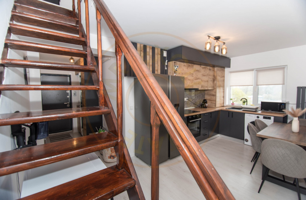 Apartament modern, cu scara interioara, situat in cartierul Eremia Grigorescu, in Pitesti, la etajul 5 + mansarda, intr-un imobil unde etajul 5 a fost construit in anul 2019. Blocul este izolat termic, zona foarte apreciata. Suprafata utila: 62,4 mp; Suprafata totala: 67,1 mp. Se vinde complet mobilat si utilat: • canapea extensibila, 2 TV • frigider side by side, cuptor electric, plita inductie, hota • masina de spalat + uscator • masa cu 6 scaune. Detine centrala proprie pe gaz si 2 x aer conditionat. Localizare excelenta: • aproape de Lidl • acces rapid catre autostrada A1 • aproape de scoli, magazine si transport in comun • zona cu spatii verzi si parcuri(Lunca Argesului si Strand). Oferim asistenta bancara si notariala. 0% COMISION pentru cumparator. Ideal pentru locuit sau investitie. Id intern: P8403