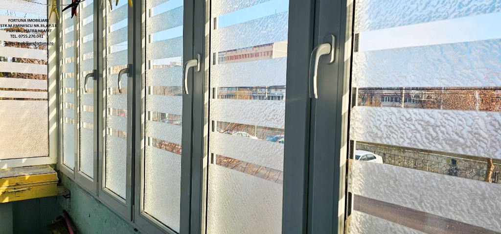 APARTAMENT 2 CAMERE, ETAJUL 1, ZONĂ CENTRALĂ, 53.000 EURO Dacă sunteți în căutarea unui imobil pentru locuit sau pentru o investiție imobiliară, FORTUNA IMOBILIARE vă supune atenției acest apartament cu 2 camere, cu o structură semidecomandată, ce răspunde tuturor categoriilor de vârstă, fiind amplasat la etajul 1, într-un bloc prevăzut cu lift, din zona centrală a Municipiului Piatra Neamț. Apartamentul are orientare cardinală EST, termosistem exterior integral și poziționare pe mijloc, fiind luminos și călduros. Are suprafața utilă de 45,92 mp + suprafața balcon de 4,93 m, suprafața totală 50,85 mp, este prevăzut cu ușă antiefracție, acces controlat prin interfon, centrala termică, termopan ( inclusiv la balcon ). Este compus din 2 holuri ( într-unul poate fi amenajat un mic dressing ), bucătărie, 2 camere, baie și balcon ( închis cu termopan ). Necesita modernizare. Beneficiază de un spațiu de depozitare pe casa scării. Se află la confluența principalelor obiective de interes din Municipiul Piatra Neamț (turistice, comerciale, culturale, educaționale, recreative, medicale etc). Preț 53.000 euro Pentru o prezentare detaliată a acestei oferte, furnizarea unor informații suplimentare referitoare la situația juridică / identificarea imobilului și programarea unei vizionări, vă invităm la sediul nostru, Fortuna Imobiliare, situat in Piatra Neamț, str. M. Eminescu, nr. 35, ap. 13, parter, jud. Neamț, lângă fostul Tribunal, tel. contact 0755.270.041. Your comfort is our priority ! Oferta noastră completă o găsiți aici: https://imobiliarefortuna.ro/