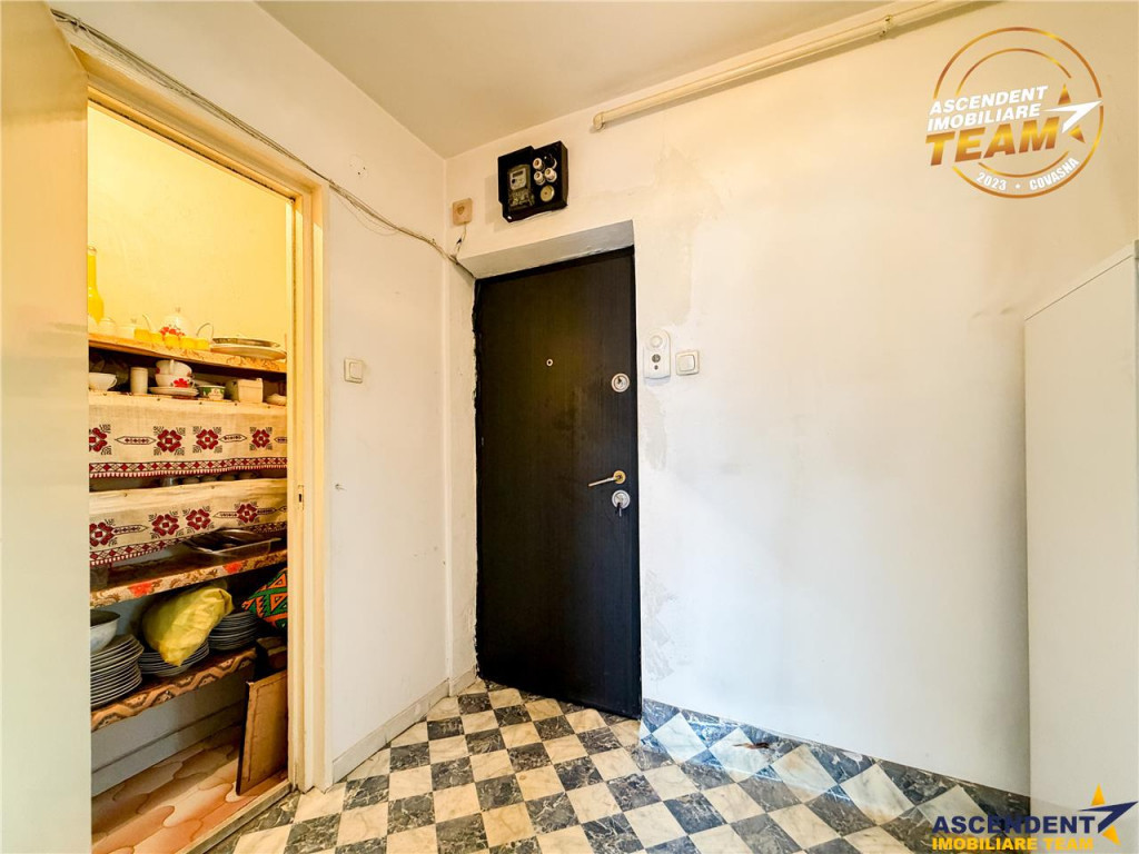 Comision cumparator 0% ASCENDENT IMOBILIARE COVASNA va propune spre vanzare apartament cu 2 camere, situat in cartierul Simeria, intr-un imobil construit in anul 1978 , disponibil la etajul 2 din 10, cu o suprafata totala de 56 mp. Locuinta dispune living, 2 holuri, bucatarie, dormitor, baie cu geam pentru aerisire, balcon lung inchis, foarte luminos, linistit, cu vedere catre vest, in zona din spate a imobilului, unde se afla o zona verde si Gradinita Gulliver. Rezidenta este gata ca viitorul proprietar sa o personalizeze. Contacteaza-ne astazi pentru a programa o vizionare sau vino la sediul agentiei Ascendent Imobiliare Covasna din bd. Grigore Balan, vis a vis de fostul Romtelecom pentru a afla detalii. Tur virtual: https://my.matterport.com/show/?m=GyiFZT7XJe6 Invitam colegii la colaborare, garantam agentului sau agentiei partenere onorariul aferent! Consilier dedicat acestei oferte: domnul Cristian Dragomir: telefon/WhatsApp: 0741298288 Detalii suplimentare, precum si alte oferte similare exclusive: www.ascendentimobiliare.ro