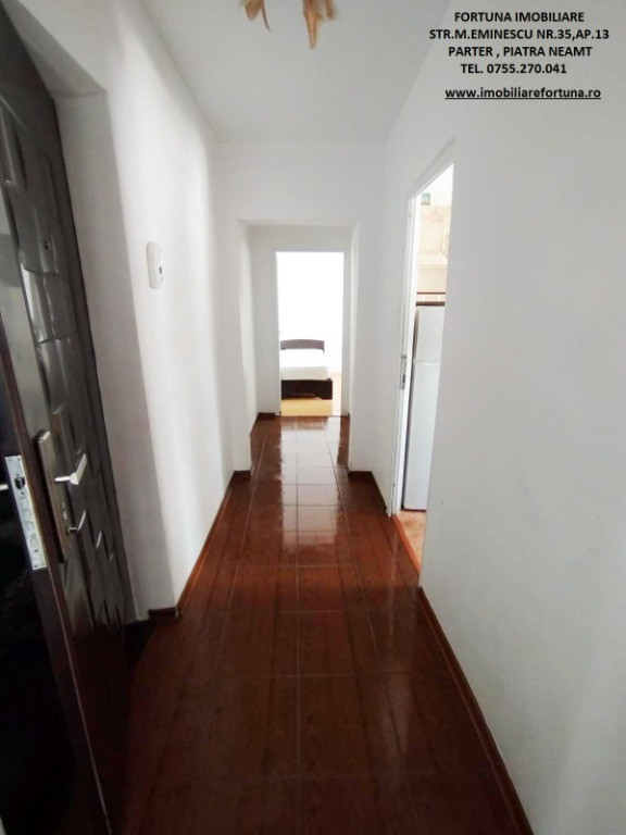 APARTAMENT 2 CAMERE, ETAJUL 2, CU BOXĂ ÎN PROPRIETATE, ZONA ȘCOALA 2 – ASIROM, 62.000 EURO FORTUNA IMOBILIARE oferă spre achiziționare acest apartament cu 2 camere, ce răspunde tuturor categoriilor de vârstă, situat în zonă centrală a Municipiului Piatra Neamț. Apartamentul este pe structură decomandată, are suprafața utilă de 41,19 mp + suprafața balcon 5,59 mp și o boxă de 4,62 mp, fiind compus din hol, baie ( cu aerisire naturală ), bucătărie, cameră de zi, dormitor și balcon. Apartamentul beneficiază de termosistem exterior integral, ușă antiefracție la intrare, acces controlat prin interfon, centrală termică, tâmplărie termopan. Se află în inima orașului, zonă verde, în proximitatea unor obiective de interes din Municipiul Piatra Neamț (comerciale, educaționale, culturale, recreative, medicale etc.) relevante/atractive pentru rezidenți/chiriași. Are toate actele la zi iar dispoziția posesie se face la data semnării contractului de vânzare. Preț 62.000 euro . Pentru o prezentare detaliată a acestei oferte, furnizarea unor informații suplimentare referitoare la situația juridică / identificarea imobilului și programarea unei vizionări, vă invităm la sediul nostru, Fortuna Imobiliare, situat pe str. M. Eminescu, nr. 35, ap. 13, parter, lângă fostul Tribunal, tel. contact 0755.270.041. Your comfort is our priority ! Oferta noastră completă o găsiți aici: https://imobiliarefortuna.ro/