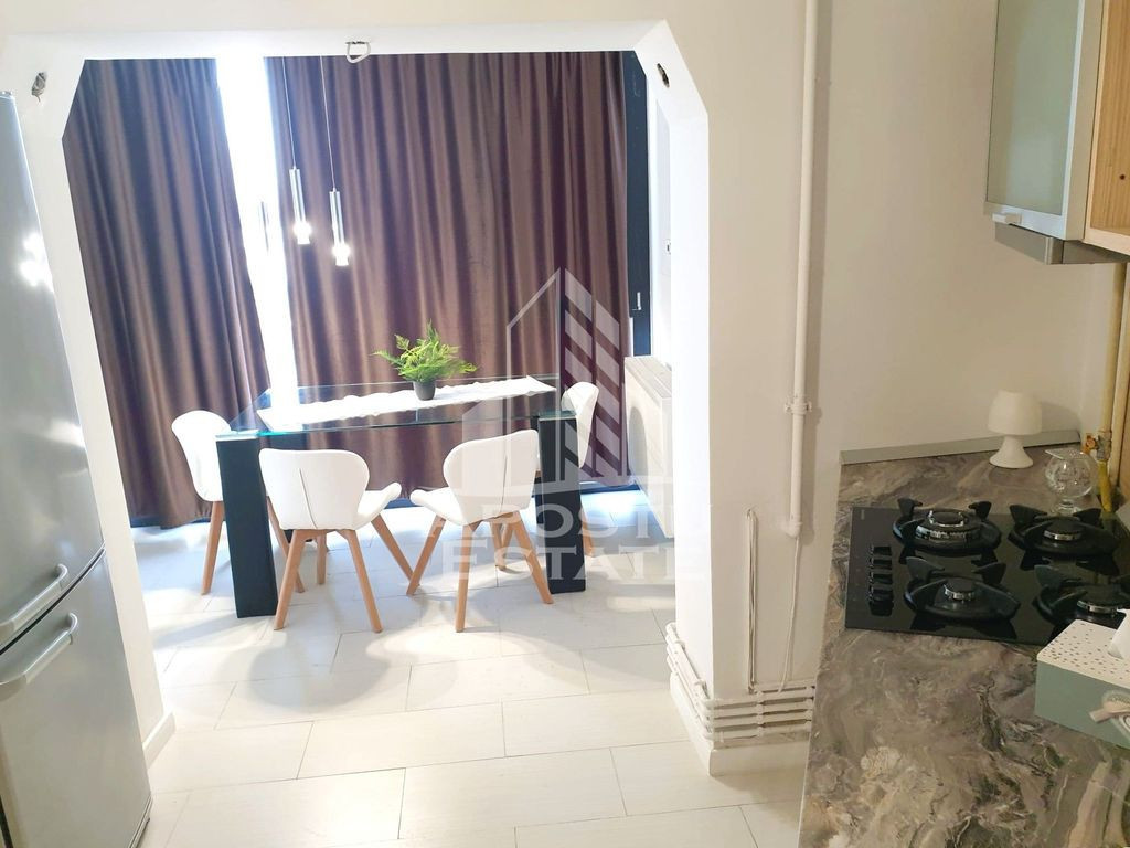 Apostu Estate va propune spre inchiriere un apartament decomandat, elegant si spatios, cu o suprafata utila de 88 mp, situat la etajul 3 din 4 intr-un imobil solid, amplasat in zona linistita si bine conectata Aradul Nou. Locuinta se remarca prin compartimentarea eficienta si finisajele moderne, fiind ideala pentru cei care isi doresc confort, spatiu si intimitate. Caracteristici si dotari: Compartimentare decomandata, cu camere bine definite si luminoase Centrala proprie cu incalzire prin calorifere, pentru un ambient placut in orice sezon Tamplarie PVC cu geam termopan – eficienta termica si fonica Usa metalica la intrare si usi interioare din MDF, cu design contemporan Apartamentul este mobilat si utilat complet. Renovat recent, se prezinta impecabil, fiind gata pentru mutare imediata Locatie excelenta: Situat intr-un cartier rezidential apreciat, apartamentul beneficiaza de acces facil la mijloace de transport in comun, supermarketuri, scoli, farmacii si alte puncte de interes. O oportunitate ideala pentru cei care cauta o locuinta moderna, bine intretinuta, intr-o zona linistita dar aproape de tot ce conteaza. Pentru mai multe detalii si programarea unei vizionari, nu ezitati sa ne contactati! ID: CP2532119