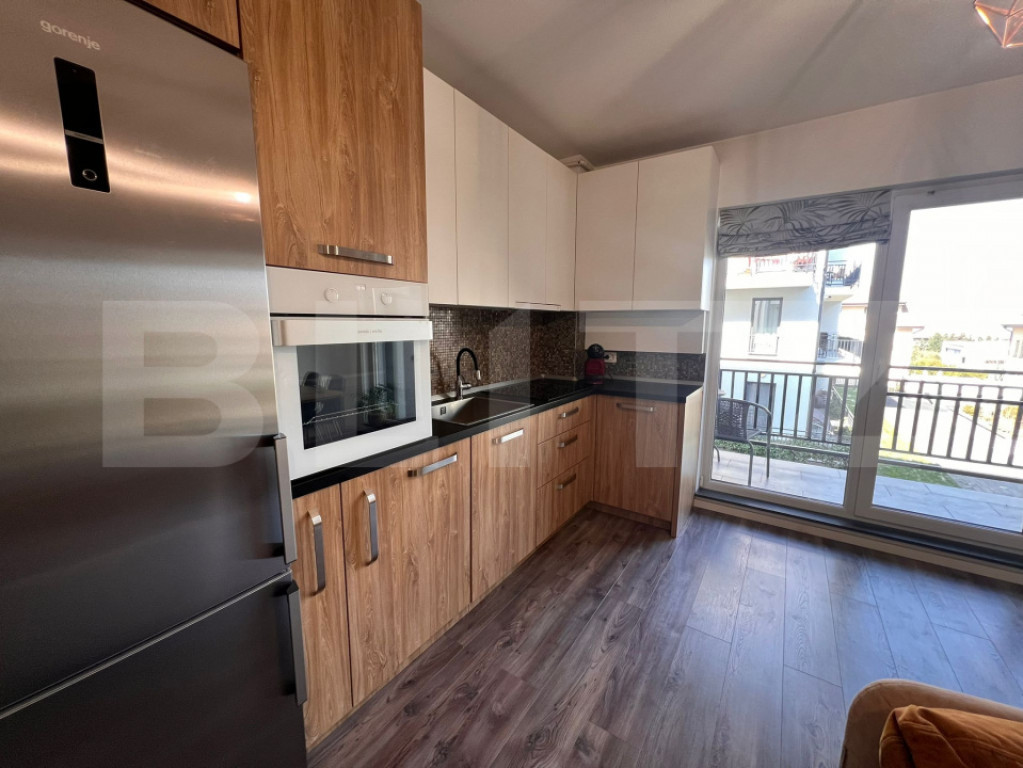 Blitz oferă spre închiriere apartament cu 2 camere, 60 m², cartier Europa, Cluj-Napoca Apartamentul are o suprafață utilă de 60 m² și este situat într-un imobil nou, la etajul 1 din 3, într-o zonă liniștită și apreciată a cartierului Europa. Locuința este compartimentată modern și eficient, fiind compusă din living open space cu bucătărie, dormitor, baie și două balcoane. Un balcon este poziționat în zona de living, iar cel de-al doilea în dormitor, oferind spații ideale pentru relaxare. Dormitorul dispune de două dressing-uri, asigurând un spațiu generos pentru depozitare. Bucătăria este complet mobilată și utilată, fiind dotată cu plită electrică, cuptor și frigider. În living se află și un Smart TV, oferind un plus de confort. Baia este modernă și echipată cu cabină de duș. Apartamentul beneficiază de centrală termică proprie, cu încălzire în pardoseală în baie, iar în restul locuinței încălzirea se face prin calorifere. Blocul este izolat termic, contribuind la un consum redus de energie. În preț este inclus un loc de parcare subterană. Apartamentul este ideal pentru un cuplu sau pentru persoane care își doresc o locuință modernă, bine compartimentată, într-o zonă liniștită. Pentru mai multe detalii sau programarea unei vizionări, vă invităm să ne contactați. Cod ofertă / ID BLITZ: P167288 Id intern: P167288