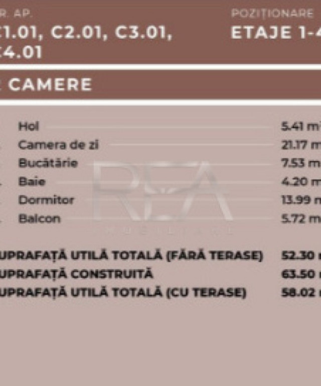 REA Imobiliare va prezinta un apartament de 2 camere in zona Ferdinand, decomadat, in proces de finalizare, etaj 1/7. Sistem de incalzire -> incalzire in pardoseala. Suprafata totala 58,02 mp din care suprafata utila de 52,30 mp, suprafata terase 5,72 mp. Configuratie: dormitor, baie, living + bucatarie, balcon. Transport in comun -> 1 min pana la statie STB Oborul Nou, 2 min pana la statia STB Horei, 7 min pana la statia de metrou Iancului si 20 min pana la statia de metoru Universitate. Pentru detalii si vizionari va rugam sa ne contactati specificand codul de identificare P10731. Id intern: P10731