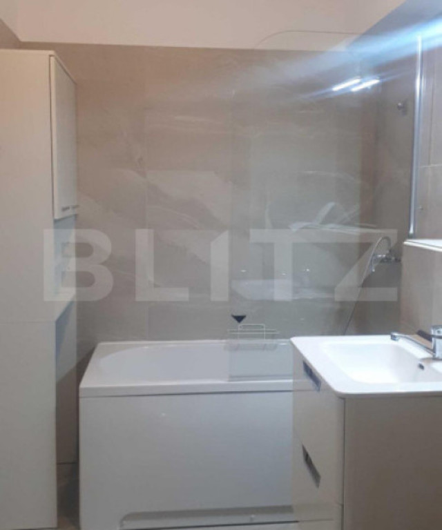 Blitz vă propune spre închiriere un apartament cu 2 camere, situat într-o zonă verde și liniștită din cartierul Iris, la doar 10 minute de Auchan. Apartamentul este amplasat la etajul 4 al unui imobil modern cu 6 niveluri, dotat cu lift, și oferă o suprafață utilă de 63 mp. ???? Compartimentare semidecomandată: living luminos dormitor cu pat matrimonial baie spațioasă cu cadă hol terasă frumoasă de 9 mp ???? Dotări și beneficii: geamuri termopan cu tâmplărie PVC ușă metalică la intrare centrală termică proprie cuptor electric complet mobilat și utilat loc de parcare subteran inclus în preț Apartamentul se închiriază pentru prima dată și este disponibil imediat. Te invităm cu drag la vizionare! Cod ofertă / ID BLITZ: P45546 Id intern: P45546
