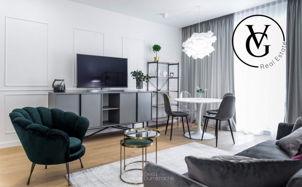 VG Real Estate vă propune spre închiriere un apartament modern cu influente scandinave, complet mobilat si utilat, format din 2 camere. Situat în Zona Herastrau, in complexul rezidential One Plaza, la cativa posi de Parcul Herastrau. Detalii proprietate: -Compartimentare: Semidecomandat -Suprafață: 55 mp -Etaj: 4/9 -Bloc nou: Da Parcare: Loc de parcare propriu contracost. Condiții închiriere: -Disponibilitate: Imediat. -Contract înregistrat ANAF: Da. -Chirie: 999 € / lună -Garanție: 1 lună Puncte de interes în apropiere: -Transport: Metrou Aurel Vlaicu - 5 minute de mers, Stație autobuz/tramvai - 3 minute de mers. -Magazine: Mega Image, Lidl, Kaufland, Froo. -Centre comerciale: Mall Promenada- 5 minute de mers. -Parcuri: Parcul Herastrau - 3 minute de mers. -Facilități: Farmacii, bănci, școli/grădinițe, săli de fitness,restaurante. Pentru mai multe detalii și vizionări, nu ezitati sa ne contactati! Id intern: P147611
