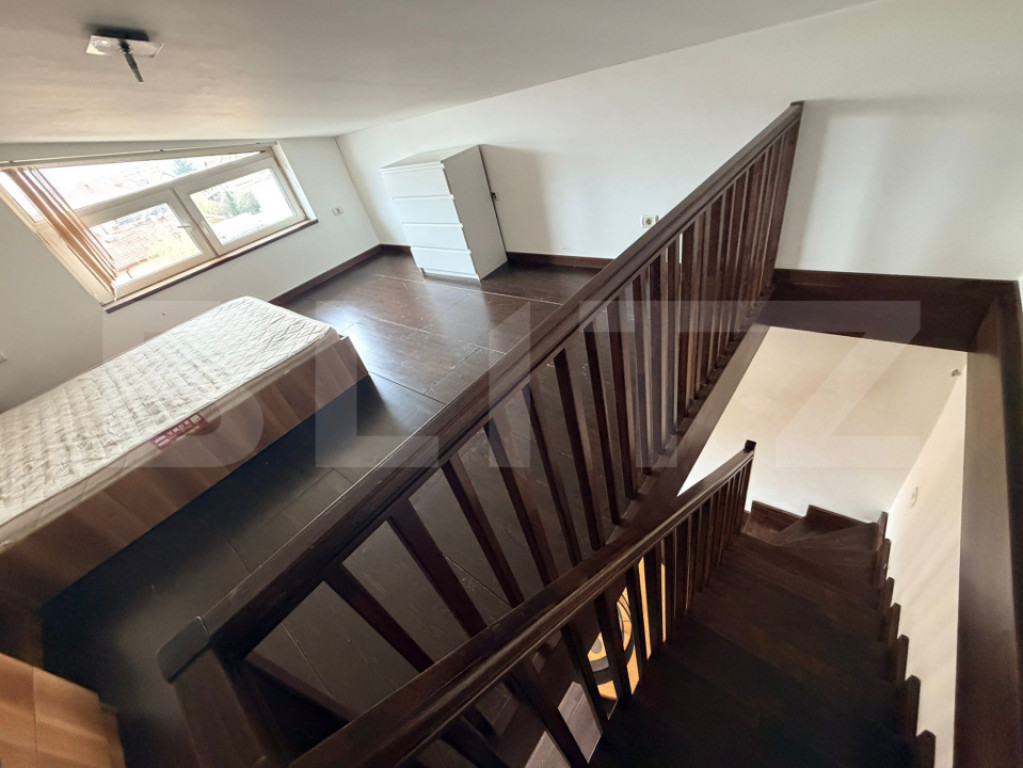 Apartament tip mansardă, 2 camere, 51 mp (34 mp utili + 17 mp CF) – zonă de case Gheorgheni, adiacent din strada Titulescu. Vă prezentăm un apartament cochet și eficient compartimentat, situat la mansarda unui imobil tip vilă, într-una dintre cele mai liniștite și apreciate zone rezidențiale din Cluj – zona de case a cartierului Gheorgheni, chiar la granița cu Andrei Mureșanu. Suprafață totală: 51 mp • 34 mp utili la nivelul principal • 17 mp la etaj, destinați dormitorului accesibil prin scară interioară Suprafața completă este înscrisă în CF și eligibilă pentru creditare Compartimentare: • Living cu bucătărie open-space • Dormitor situat la etaj Se vinde conform imaginilor – apartamentul este pregătit pentru locuire sau investiție imediată. Facilități: • Centrală pe bloc pentru încălzire eficientă • Aer condiționat pentru confort pe timp de vară Localizare ideală pentru cei care caută liniște, intimitate și acces rapid către punctele centrale ale orașului – în apropierea cartierelor rezidențiale de top din Cluj. Actele sunt în regulă, apartamentul este intabulat și poate fi achiziționat inclusiv prin credit bancar. Cod ofertă / ID BLITZ: P146950 Id intern: P146950