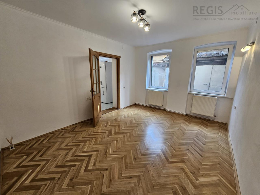 ID intern: 5704 REGIS Imobiliare va propune spre inchiriere un apartament situat intr-o casa renovata, compus din 2 camere, baie, bucatarie si acces la o curte interioara cu gradina. Locatia este ideala, situata la imbinarea centrului istoric cu cel civic al Brasovului, intre Teatrul Dramatic si Sala Patria. Desi apartamentul se afla la strada principala, in zona centrala, curtea interioara ofera un grad ridicat de izolare fonica si posibilitatea relaxarii intr-un cadru linistit si verde. La doar cativa pasi de Mall Afi, restaurante, magazine si mijloace de transport in comun. Comisionul agentiei este de 50% TVA.