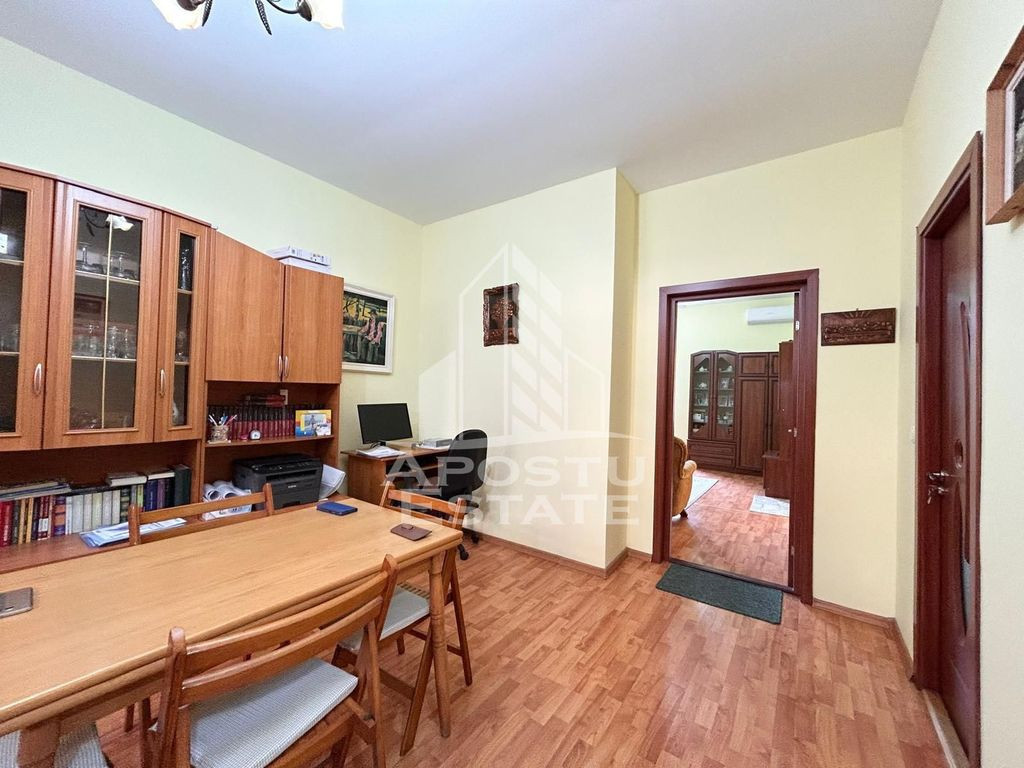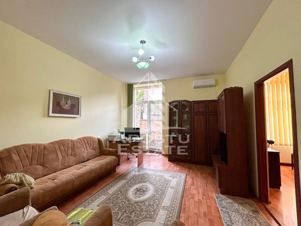 Apostu Estate vă propune spre vânzare un apartament cu 2 camere plus birou, situat într-o clădire istorică, la doar 500 m de centrul Timișoarei! Această proprietate oferă un spațiu elegant și confortabil, perfect pentru locuit sau investiție, datorită amplasării centrale și accesului ușor la toate punctele de interes. Compartimentare: Sufragerie luminoasă Dormitor matrimonial Cameră secundară versatilă Bucătărie complet utilată Baie cu cadă Apartamentul beneficiază de o mică grădină accesibilă direct din locuință, oferind un loc ideal pentru relaxare sau activități în aer liber, un avantaj rar pentru zona centrală. Detalii imobil: Regim de înălțime: P+2, apartamentul fiind situat la parter Clădire istorică reabilitată Confort și dotări: Centrală termică proprie – pentru un confort termic optim Apartamentul se vinde complet mobilat și echipat, exact cum apare în fotografii, pregătit pentru mutare imediată Localizare excelentă: Piața Maria, una dintre cele mai căutate zone din Timișoara, la doar câțiva pași de centrul orașului și de principalele mijloace de transport în comun Această proprietate este ideală atât pentru locuit, cât și pentru închiriere pe termen lung sau scurt Vă așteptăm cu drag la vizionare! Contactați-ne pentru mai multe detalii sau pentru a stabili o întâlnire chiar astăzi.