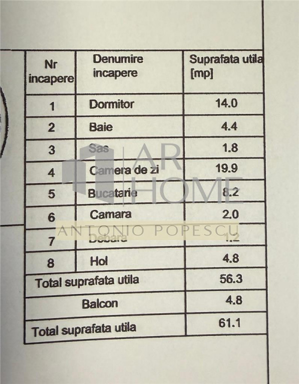 Suprafața utilă 61 m²