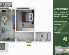 Blitz propune la vânzare apartament cu 2 camere, bucătărie open space cu living, situat la etajul 3 al unui imobil modern. Locuința are o suprafață utilă de 50,20 mp și este compartimentată eficient pentru a oferi confort și funcționalitate. Apartamentul este compus din living spațios cu bucătărie open space, dormitor luminos, baie, spațiu de depozitare și balcon de 3,81 mp. Compartimentarea este practică, iar suprafețele sunt bine optimizate pentru a crea un ambient aerisit și plăcut. Proprietatea este ideală atât pentru locuit, cât și pentru investiție, fiind potrivită pentru un cuplu sau pentru închiriere. Zona oferă acces facil către puncte de interes precum magazine, mijloace de transport, școli și alte facilități urbane. Pentru mai multe detalii sau pentru programarea unei vizionări, vă stăm la dispoziție.