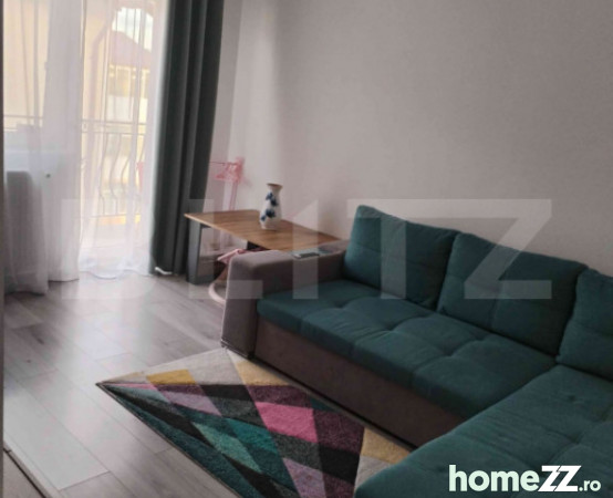 Livingul este mobilat cu colțar, dulap și masă, iar dormitorul este echipat cu pat și saltea, dulap cu două uși și mai multe comode, oferind multiple soluții de depozitare. Finisajele moderne, ușile interioare de calitate superioară, centrala termică proprie și aparatul de aer condiționat contribuie la un nivel ridicat de confort și eficiență energetică. Apartamentul dispune, de asemenea, de un balcon deschis și de un loc de parcare dedicat.