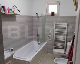 Apartamentul impresionează prin compartimentarea practică și spațiile bine organizate. Holul oferă acces către un spațiu suplimentar de depozitare situat în pod, un avantaj rar întâlnit în acest tip de compartimentare. Bucătăria este separată și complet utilată, incluzând frigider, plită, cuptor și mașină de spălat rufe, oferind confort și funcționalitate în utilizarea zilnică. Baia beneficiază de geam pentru lumină naturală și aerisire eficientă, un detaliu important pentru un plus de confort.