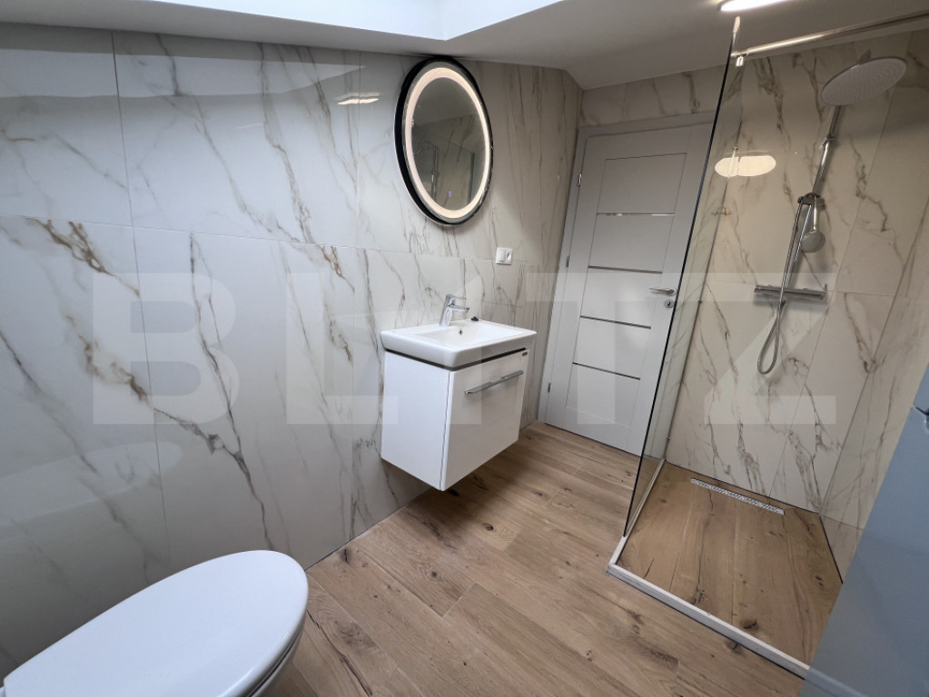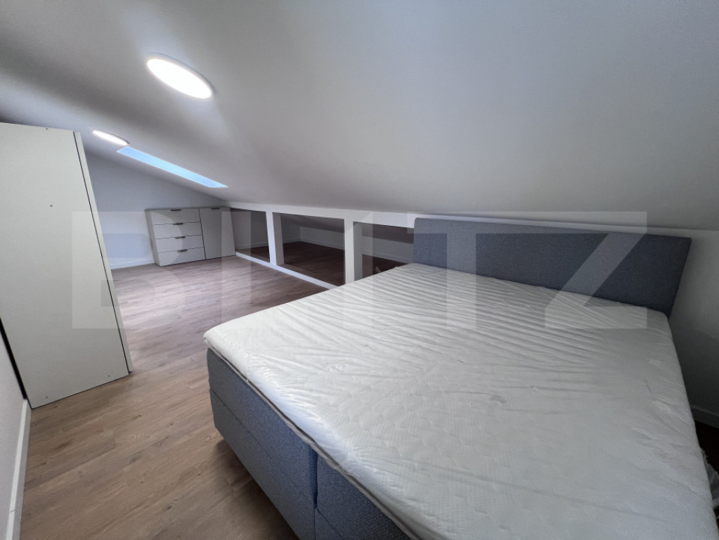 Blitz oferă spre închiriere apartament cu 2 camere, 550 euro, parcare inclusă, situat la mansardă, într-un imobil tip vilă, zona Europa – zona Mercedes-Benz, Cluj-Napoca Apartamentul este situat la mansarda unei vile, într-o zonă foarte liniștită din cartierul Europa, aproape de zona Mercedes-Benz. Locuința beneficiază de ultrafinisaje și de o compartimentare modernă, fiind compusă din dormitor, living open space cu bucătărie și baie. Bucătăria este dotată cu plită electrică cu cuptor, iar apartamentul dispune de încălzire în pardoseală prin centrală termică proprie, aer condiționat, precum și electrocasnice precum mașină de spălat vase și mașină de spălat rufe. De asemenea, locuința dispune de dressing, iar finisajele sunt realizate la standarde înalte. Apartamentul urmează să fie mobilat în cel mai scurt timp, astfel încât viitorii chiriași se vor putea bucura de un spațiu modern și confortabil. În prețul chiriei de 550 euro/lună este inclus și un loc de parcare. Pentru mai multe detalii sau informații suplimentare, vă invităm să ne contactați telefonic. Cod ofertă / ID BLITZ: P166869 Id intern: P166869