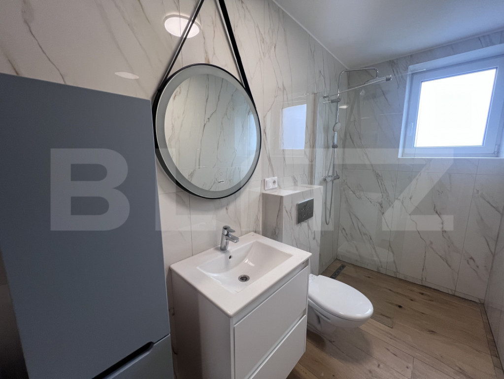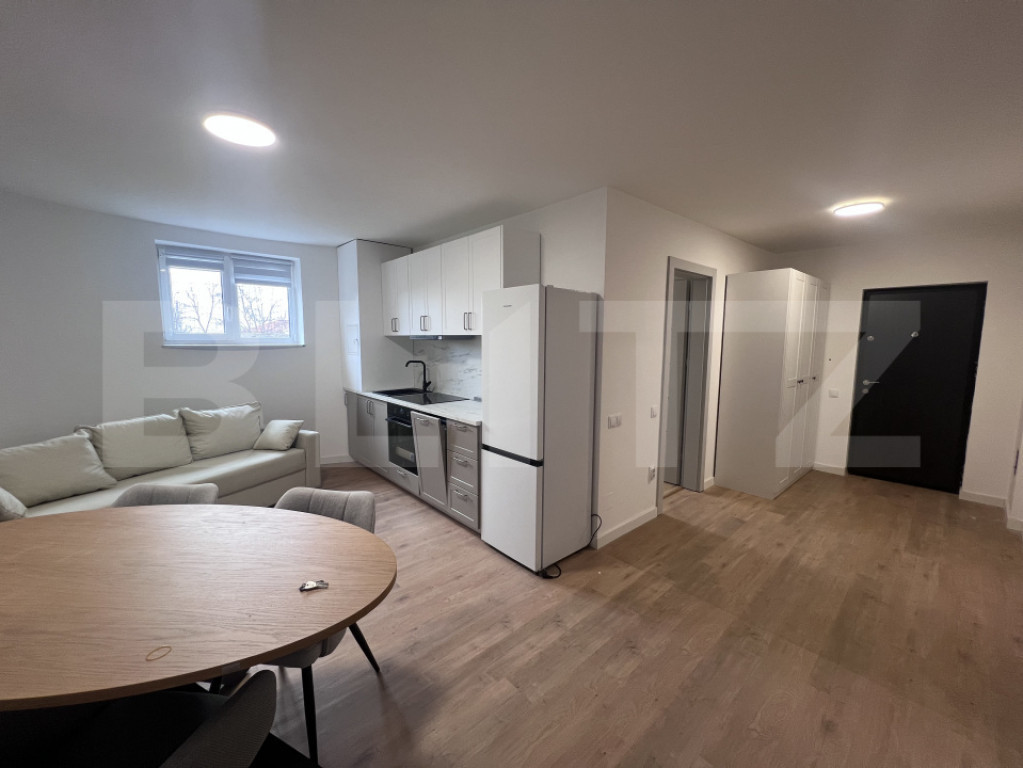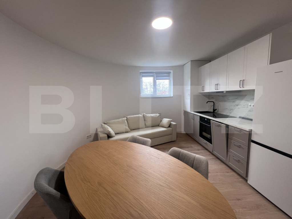 Blitz oferă spre închiriere apartament cu 2 camere, 550 euro, parcare inclusă, situat la demisol într-un imobil tip vilă, zona Europa – zona Mercedes-Benz, Cluj-Napoca Apartamentul este situat la demisolul unei vile, într-o zonă foarte liniștită din cartierul Europa, aproape de zona Mercedes-Benz. Locuința beneficiază de ultrafinisaje și de o compartimentare modernă, fiind compusă din dormitor, living open space cu bucătărie și baie. Apartamentul este mobilat lux, cu mobilier modern și de calitate, oferind un spațiu confortabil și elegant pentru viitorii chiriași. Bucătăria este dotată cu plită electrică cu cuptor, iar locuința dispune de încălzire în pardoseală prin centrală termică proprie, precum și electrocasnice precum mașină de spălat vase și mașină de spălat rufe. De asemenea, apartamentul va beneficia și de dressing. În prețul chiriei de 550 euro/lună este inclus și un loc de parcare. Pentru mai multe detalii sau informații suplimentare, vă invităm să ne contactați telefonic. Cod ofertă / ID BLITZ: P166873 Id intern: P166873
