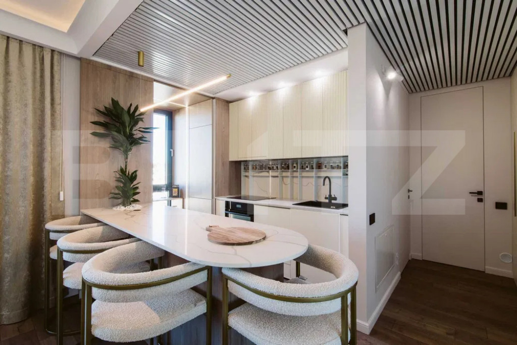 Blitz oferă spre închiriere un apartament spectaculos, 2 camere, finisaje de lux, în inima zonei Iulius Mall/ Gheorgheni — un nou reper al eleganței urbane din Cluj! Localizare premium — epicentrul nou al Clujului Apartamentul este situat într-una dintre cele mai dinamice și bine conectate zone ale orașului, chiar în noul pol de dezvoltare urbană. Imobilul se bucură de acces facil către toate punctele de interes: birouri, spații comerciale, parcuri, restaurante, mijloace de transport, zone de fitness și promenadă. Inclusiv o conectivitate excelentă cu centrul orașului. Clădirea este retrasă de la artera principală, fiind înconjurată de zone verzi și arbori, ceea ce oferă liniște și confort într-un cadru modern. Imobil de top – construcție 2022 Proiectat cu o execuție impecabilă și un design inspirat din arhitectura New York & stilul britanic clasic, imobilul se remarcă prin: – Fațadă ventilată cu detalii din cărămidă – Sistem smart home, controlabil de pe telefon – Zone comune finisate la standarde înalte – Magazin chiar la parterul imobilului Detalii apartament: – Suprafață: 60 m², 2 camere semidecomandate – Etaj: 6/7 – Încălzire centralizată prin pardoseală – Aer condiționat în fiecare cameră – Terasă generoasă cu acces din living – Termopane din aluminiu de ultimă generație pentru izolare fonică și termică optimă Compartimentare & design interior Apartamentul oferă o atmosferă rafinată, cu finisaje de înaltă calitate: Living spațios & zonă de birou dedicată – Spațiu generos, luminos – Șemineu cu bioetanol – element central de design – Sistem audio surround integrat în tavan pentru experiențe cinematice autentice – Zonă dedicată pentru birou – ideal work-from-home Bucătărie open-space – Separată elegant de living prin bar cu blat din marmură și 4 locuri – Mobilată la comandă, finisaje premium – Electrocasnice complet incorporate, de top: cuptor, plită, hotă, cuptor cu microunde, mașină de spălat vase – Toate ustensilele necesare pentru gătit incluse Dormitor matrimonial – Spațios, amenajat elegant – Dulapuri integrate, realizate la comandă pentru maxim de depozitare – Atmosferă rafinată, ideală pentru relaxare Baie modernă & stilată – Duș walk-in cu sticlă securizată – Accesorii și detalii în nuanțe negre, cu accente premium – Dotată complet pentru confortul zilnic Facilități suplimentare – Loc de parcare în subteranul imobilului - Videointerfon - Lobby ???? Contactează-ne pentru o vizionare — descoperă un apartament de lux, într-o zonă cu adevărat exclusivistă, pregătit pentru un stil de viață modern și rafinat! Cod ofertă / ID BLITZ: P159236 Id intern: P159236