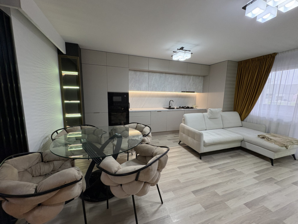 Blitz propune spre vânzare un apartament de lux situat într-un imobil nou, finalizat în 2020, în cartierul Mărăști, în imediata apropiere a mijloacelor de transport, Kaufland, Lidl și a principalelor puncte de interes ale zonei. Apartamentul are o suprafață utilă de 59 mp + balcon generos de 15 mp, fiind compartimentat în 2 camere semidecomandate, dressing walk-in, baie și terasă cu acces atât din dormitor, cât și din living. Locuința este mobilată și utilată în stil contemporan, cu mobilier din lemn masiv, atent ales și perfect integrat în designul modern al spațiului. Dormitorul dispune de pat matrimonial din lemn masiv cu spații de depozitare integrate, noptiere și dressing spațios. Zona de dressing walk-in oferă spațiu suplimentar pentru organizare, cu posibilitatea extinderii zonelor de depozitare. Livingul open-space cu bucătăria creează un ambient relaxant și elegant. Bucătăria este complet echipată: combină frigorifică, cuptor electric, cuptor cu microunde, mașină de spălat vase, plită pe gaz, hotă și centrală termică proprie cu încălzire prin calorifere. Blatul generos, multiplele spații de depozitare și iluminarea LED integrată completează funcționalitatea spațiului. Zona de dining și canapeaua orientată către șemineu creează cadrul perfect pentru seri liniștite în familie. Apartamentul este orientat sud-vest, beneficiind de lumină naturală pe tot parcursul zilei. Baia este dotată cu cadă tip jacuzzi, mobilier pentru depozitare, oglindă cu iluminare integrată și sistem de ventilație. Proprietatea se vinde complet mobilată și utilată, gata pentru mutare imediată. Contra cost se poate achiziționa loc de parcare subteran (dimensiune generoasă). Vă așteptăm la vizionare! Cod ofertă / ID BLITZ: P165021 Id intern: P165021