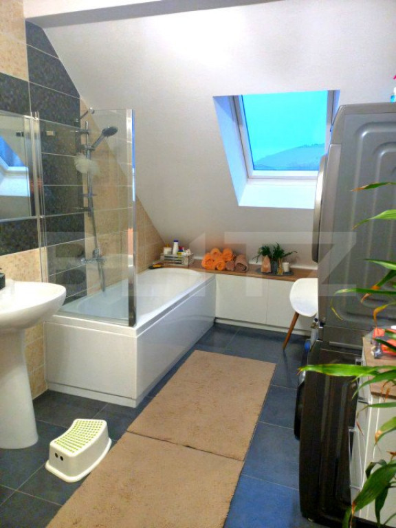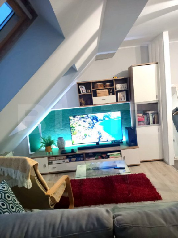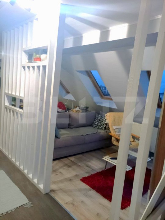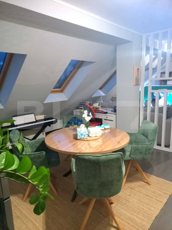 Blitz va propune spre vanzare apartament cu 2 camere, din zona Tautiului, din Floresti. Apartamentul are o suprafata utila de 52.5 mp si este situat la mansarda unui imobil nou, de 2 etaje. Compartimentarea se prezinta astfel: bucataria open space cu living, hol, 1 dormitor si o baie cu geam. Apartamentul dispune de asemenea si de un spatiu de depozitare tip pod, cu suprafata generoasa. Se vinde la stadiul de partial mobilat si utilat, finisajele fiind de o calitate superioara. Baia este spatioasa, apartamentul dispune de centrala termica si aer conditionat, geamuri termopan cu vedere minunata, usa metalica antiefractie la intrare. Aditional, se poate achizitiona un loc de parcare exterior pentru suma de 5000 euro. Cod ofertă / ID BLITZ: P136277 Id intern: P136277