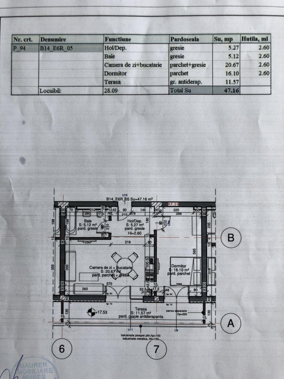 Vand apartament cu 2 camere, locuinta personala, in Maurer Residence, Targu Mures. Apartamentul este la etajul 6 din 6, 2 lifturi pe scara.Suprafata utila 47.16mp+ terasa 11.57mp, boxa la demisol, loc de parcare suprateran(se vinde separat).Apartamentul este disponibil din luna mai 2026. Accept si achizitia prin credit.