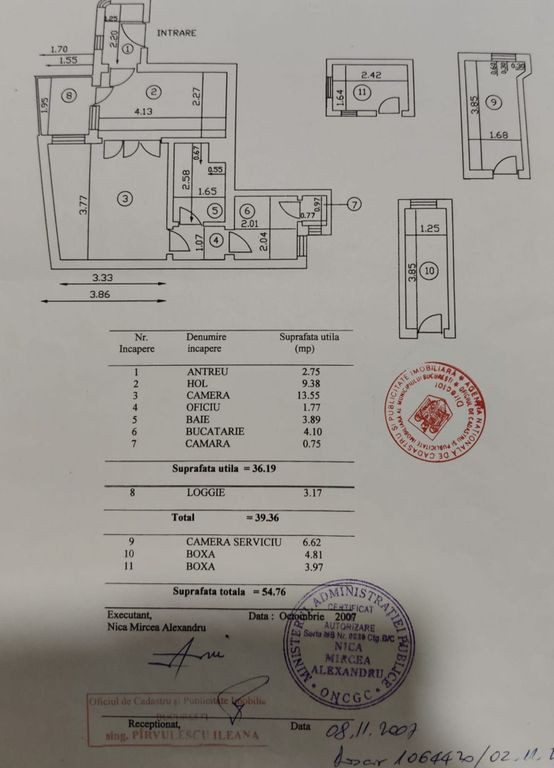 Va propunem spre vanzare un apartament de 2 camere, cu o suprafata totala de aproximativ 40 mp,care beneficiaza si de o camera de serviciu de 6,62 mp, o boxa de 4,81 mp+boxa de 3,97mp, care se afla in cadastru. Apartamentul necesita renovare, insa datorita pozitiei excelente, la o distanta de aproximativ 600 m de metrou Stefan cel Mare ,10 minute de Piata Romana,ASE,este o alegere perfecta pentru cei ce isi doresc un apartament intr-o zona linistita , dar accesibila, fiind ideal si pentru investitie. Acesta dispune de centrala proprie. Scara este linistita si foarte ingrijita . Pentru informatii sau vizioanri, contactati-o pe Antonia la 0758880813 Comision standard